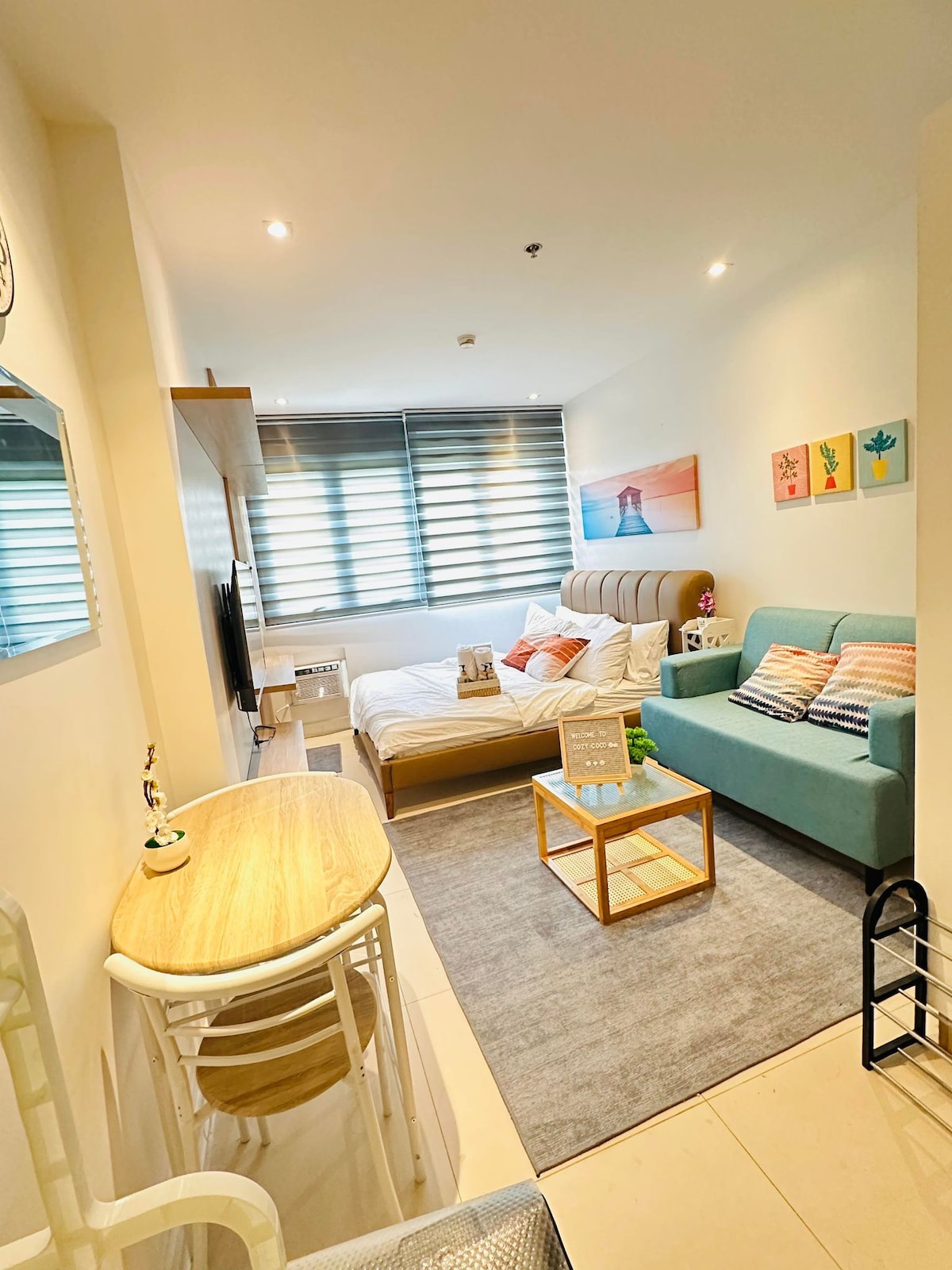 Welcome to your home away from home! We currently live in Canada, so we are renting out our fully furnished 25-square-meter studio penthouse, located in the heart of Commonwealth and Batasan Hills. It’s ideal for 2 adults and 1 child, featuring a queen-size bed and a cozy 2-seater sofa in the living area. The kitchen is fully equipped with cooking and dining wares for your convenience, and the bathroom comes with complimentary toiletries. Guests also enjoy free access to the condo amenities. ♡