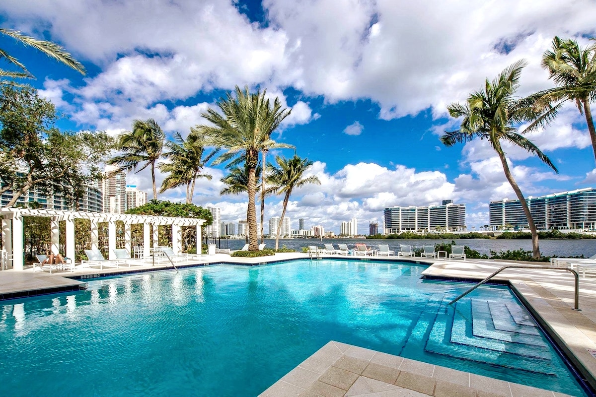 Aventura 1卧室泳池景观,步行即可到达商场