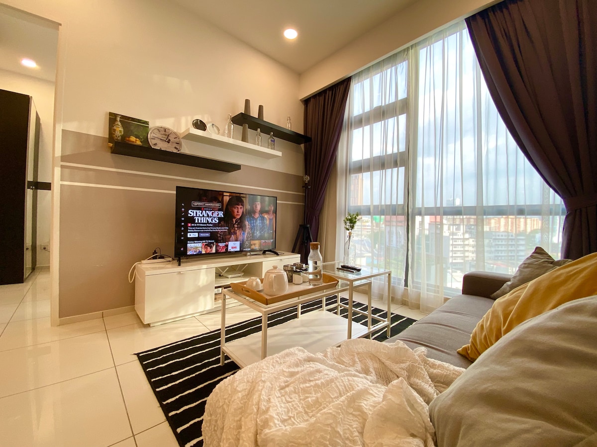 Sit back and relax in this calm, stylish space. Why Orchid 2BR suite at Lucentia Residence: - Best views of KL - Beautifully decorated with a fun spirit - Centrally located & attached to public transit hub - Fast wifi - 2 TVs with Netflix & others - 2 gorgeous pools - Family friendly with baby crib & highchair - Gym, pool table, BBQ pits, piano - Garage parking - Recommended to Sleeps 5, max 6 - LaLaPort Shopping Mall & the WOW entertainment street are attached - Grocery, drug store & Cinema etc
