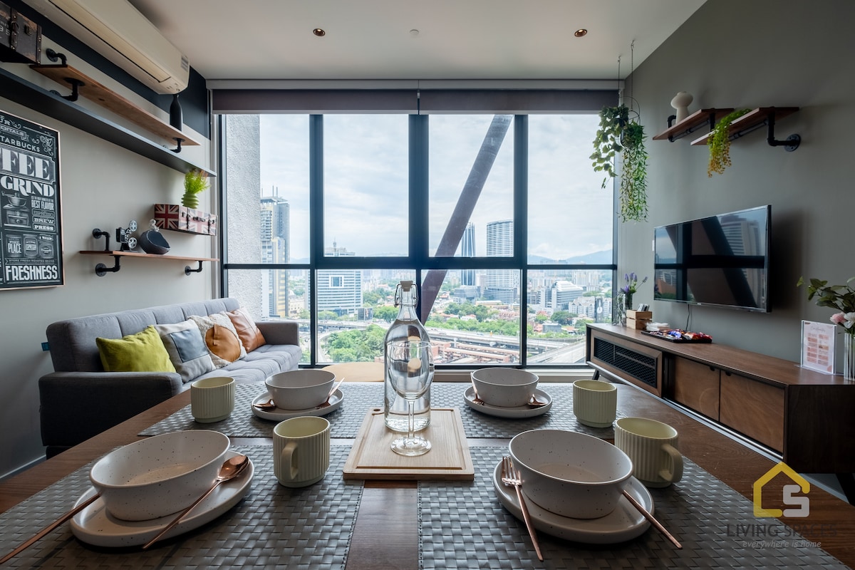 Sit back and relax in this calm, stylish space. Why Orchid 2BR suite at Lucentia Residence: - Best views of KL - Beautifully decorated with a fun spirit - Centrally located & attached to public transit hub - Fast wifi - 2 TVs with Netflix & others - 2 gorgeous pools - Family friendly with baby crib & highchair - Gym, pool table, BBQ pits, piano - Garage parking - Recommended to Sleeps 5, max 6 - LaLaPort Shopping Mall & the WOW entertainment street are attached - Grocery, drug store & Cinema etc