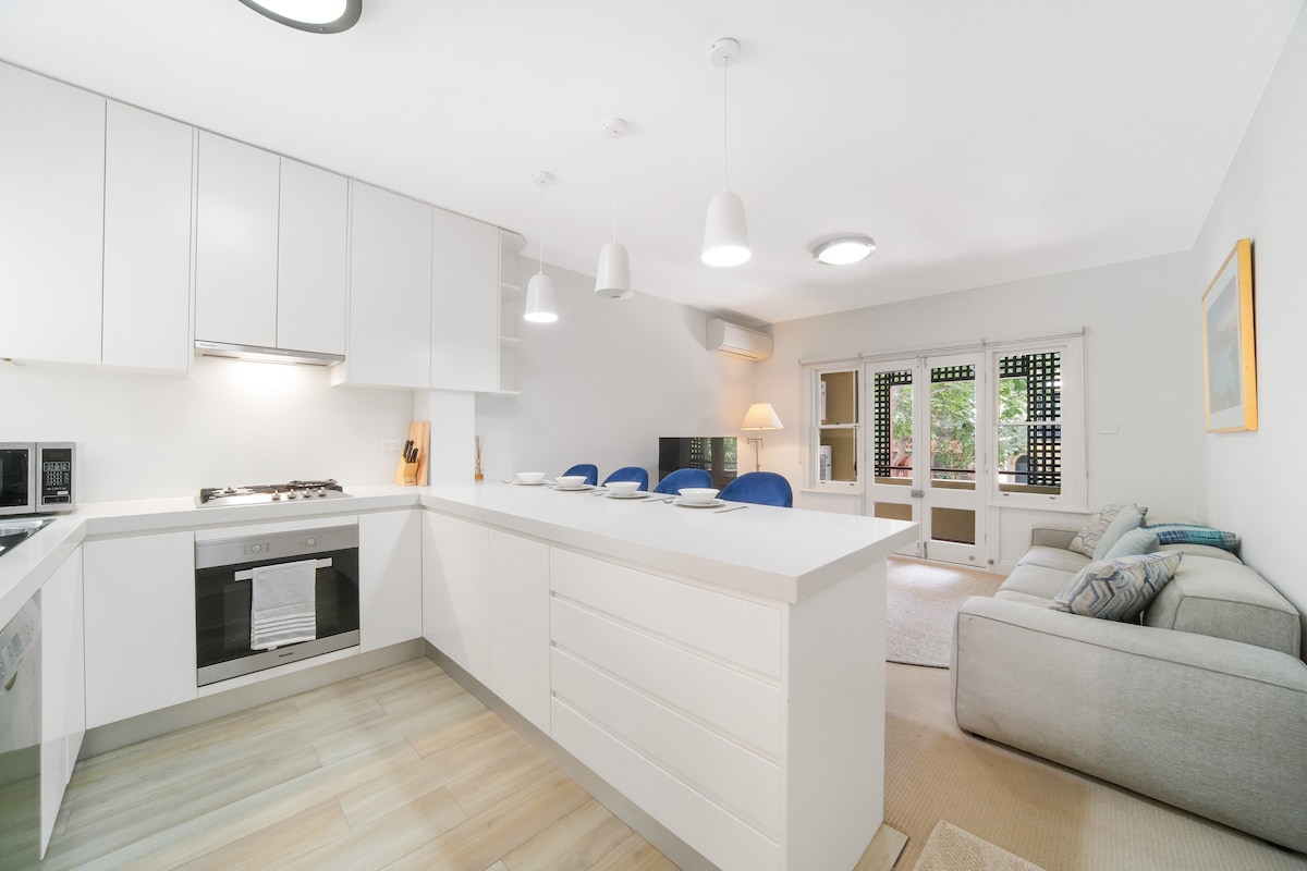 Walking distance to everything with views to the harbour. This stylish apartment is close to Oxford St., Kings Cross, Potts Point is a 10min walk to Allianz Stadium and SCG. Walk to CBD. Fully equipped kitchen, super comfortable adjustable bed. Tasteful Art. Everything you need for a longer stay. Walk through Paddo's fashion shops and famous galleries. Dine at local cafes and pubs. Enjoy the harbour breeze from balcony. Harbour beaches, all your favorite tourist spots are all close by.