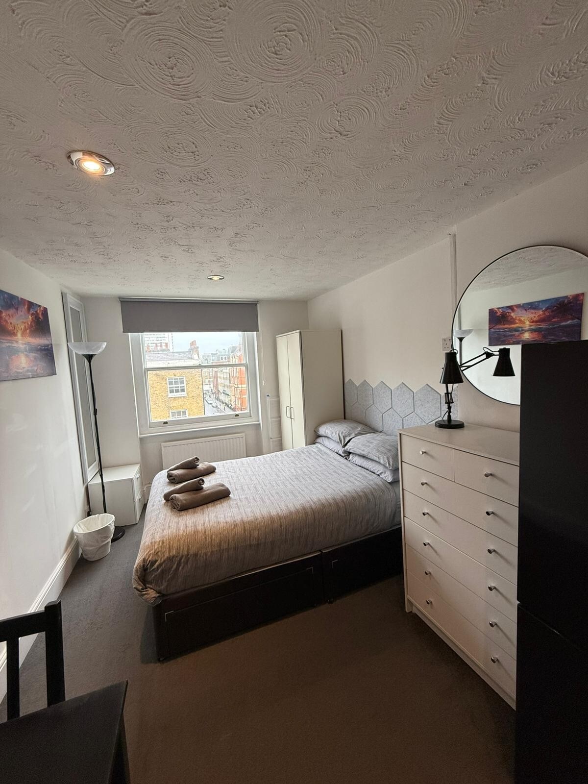 Charming studio flat on a high floor with beautiful London skyline views. Located just 3 minutes’ walk from Baker Street Station, offering excellent access to central London and major attractions. The studio includes a private bathroom, fully equipped kitchen, and washing machine. Guests enjoy free Wi-Fi, fresh towels and bedding, hairdryer, and iron for a comfortable and convenient stay. Ideal for short or long visits to London.