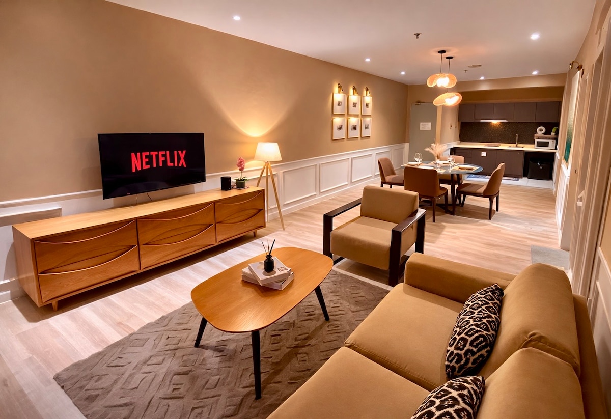 The ultimate holiday Airbnb unit, View of KK city, Gaya island, Sabah International Convention Centre. A romantic warm feeling of sunset view with a home living space, an elegant dining room, 2 beautiful bedroom and 2 modern bathroom, you'll have the ultimate suite experience. Spanning 701sqft, the Jesselton Suite also come with a complimentary Netflix, Disney Plus & HBO GO movie app for you to enjoy. 📌 6min walk to Jesselton Point 📌 9min walk to Suria Sabah