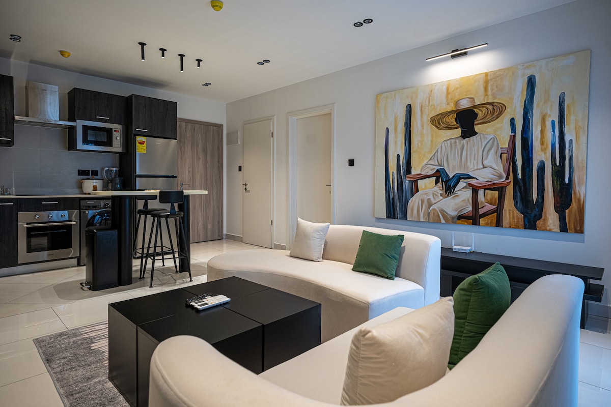 The Serene Haven — Your Calm Landing in Accra Just five minutes after touching down at Kotoka Airport, step into a space where the city slows and comfort takes over. Our spacious 2‑bedroom retreat in Airport Residential blends modern design with a quiet, restorative atmosphere. Wake to soft light, unwind in generous spaces, and enjoy Accra’s most prestigious neighborhoods right at your doorstep. For business, romance, or a long stay, Serene Haven becomes the peaceful chapter of your Accra story