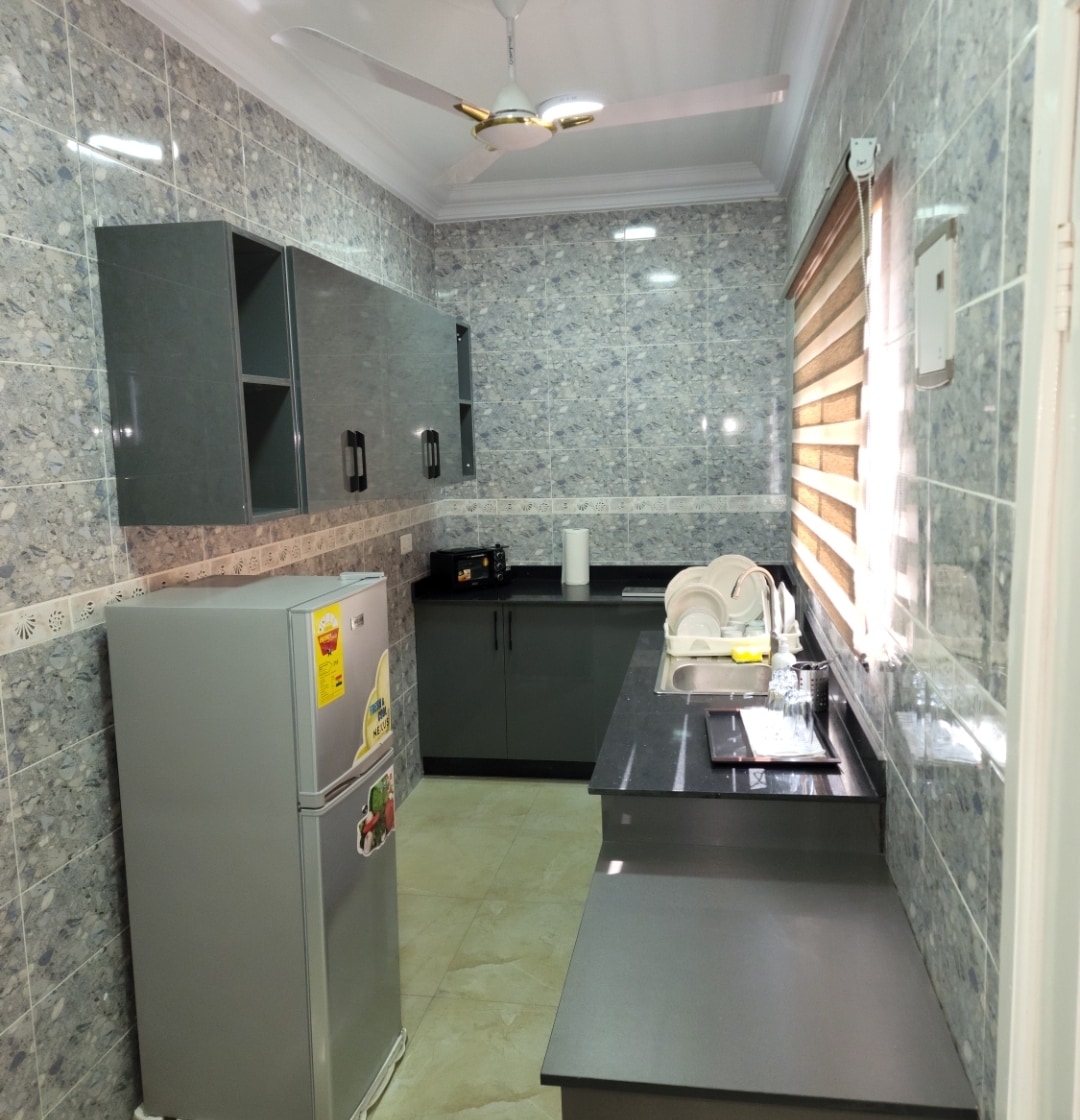 Kick back and relax in this calm, stylish space. Simply Beautiful and peaceful. 5 minutes drive from the Kotoka International Airport. Two fully furnished bedrooms with one private office space
