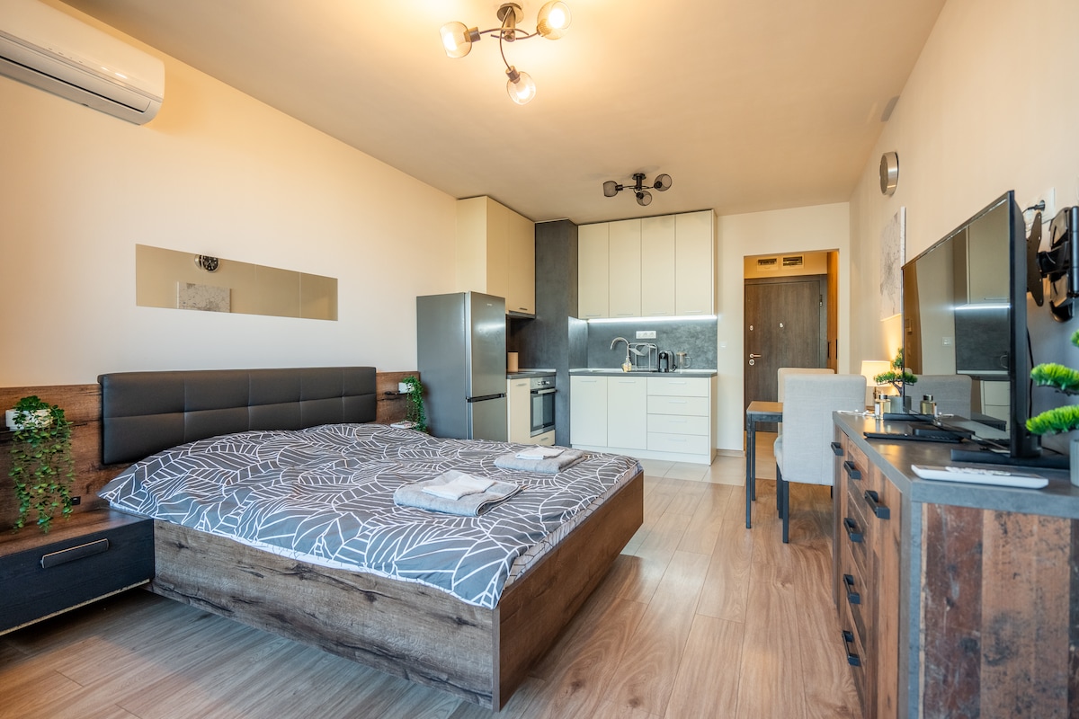 The place to stay when you are in Sofia! Come enjoy a luxurious experience in this one of a kind brand new development in Studenstki grad offering luxurious and stylish furnishings, a fully equipped bedroom, kitchen and bathroom with all you need for a comfortable stay. Located right next to the University of National and World Economy (УНСС) the building is unique with its holistic approach to solving your residential needs - from the smooth check in process to a comfortable, relaxing sleep.