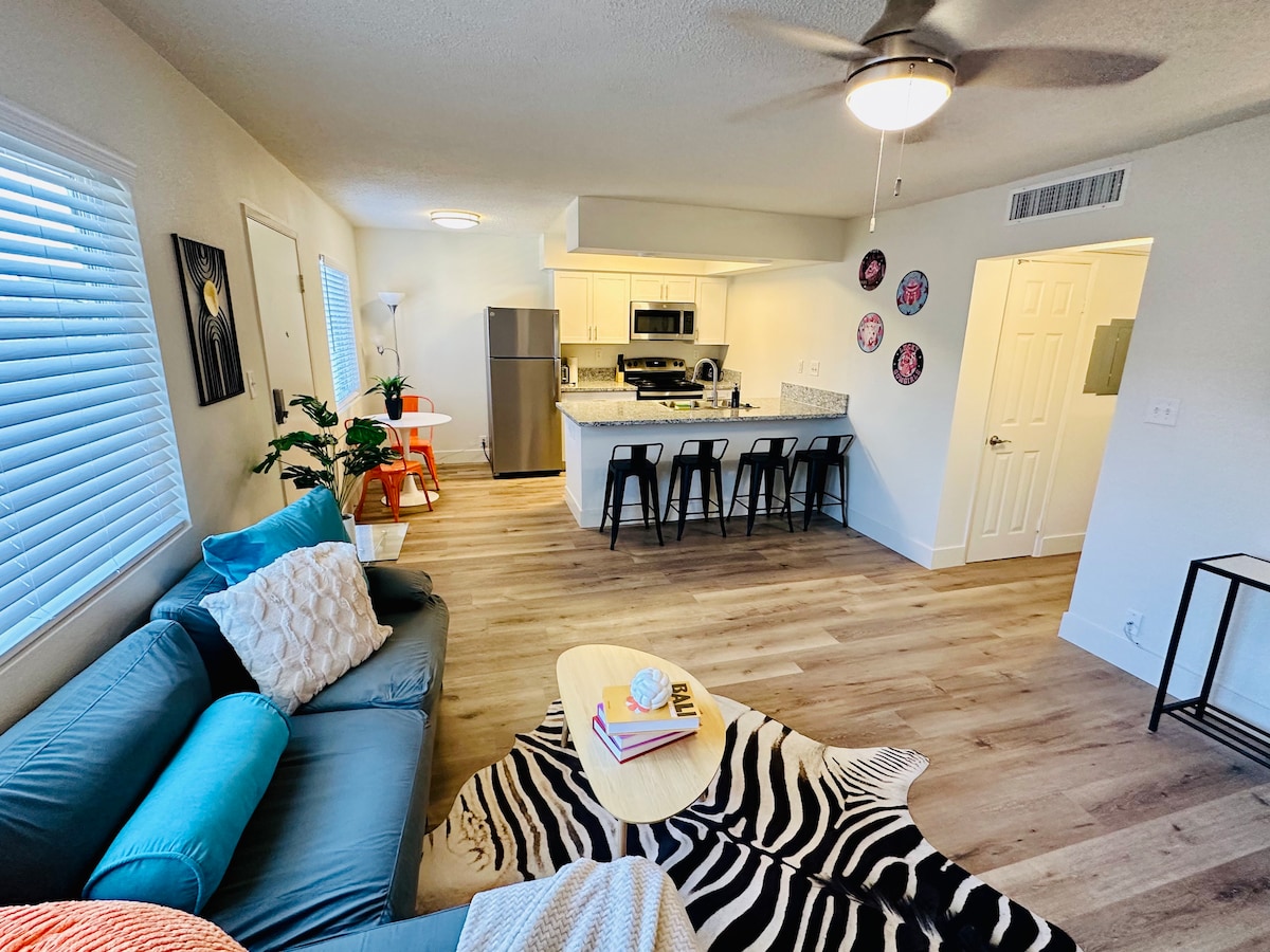 Live inspired in our studio loft located in the lively Las Vegas Arts District. This inviting space is ideal for travelers seeking adventure or remote workers needing a productive environment, featuring a large desk with a monitor. Step outside to explore an array of restaurants, shops, and vibrant nightlife, conveniently situated between downtown Las Vegas and the Strip. Unwind and recharge in our well appointed loft, where comfort and convenience come together for the perfect getaway!