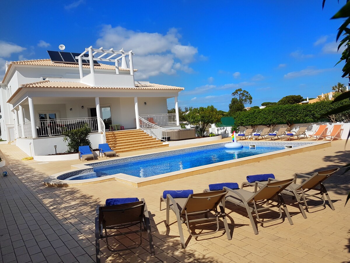 Offrez vous un séjour de rêve en Algarve avec une superbe vue à 180° sur la cote, vue terre & mer dépaysante. A proximité du centre de Loulé, des plages de l'Algarve et de l'aéroport. Journées au bord de la piscine et soirées avec une vue fabuleuse sur le coucher de soleil. Détente assurée dans cette demeure avec piscine, putting green de golf privé, une salle de sport, billard, deux salon TV et salle de détente avec grand écran pour des soirées ciné. Wifi & climatisation