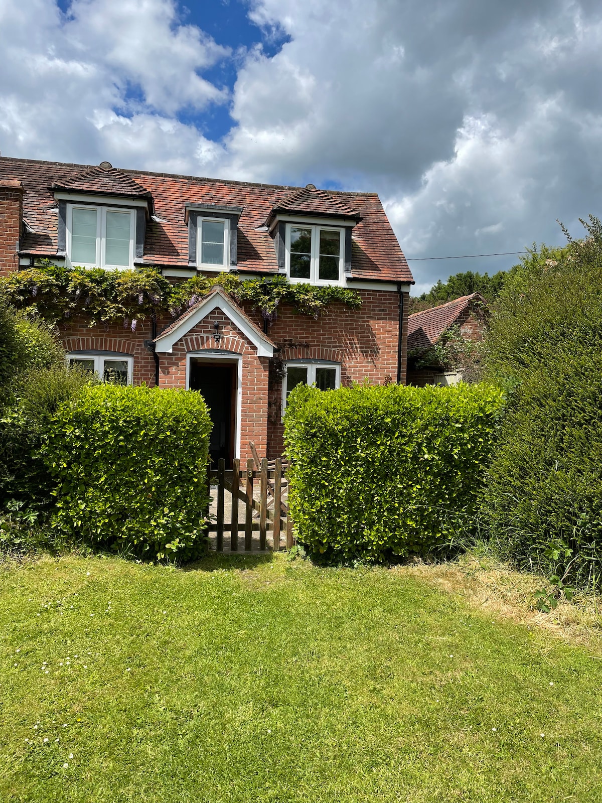 Godwin's cottage is a stunning refurbished 18th Century thatched cottage. Although attached to the main property, it has its own private entrance, private roof terrace and large fenced garden area with private Hot Tub & BBQ, so plenty of space to spread out and relax, whether it's al fresco breakfast in the morning or an evening dip in Hot Tub watching the sun set over fields. We also have outbuildings which can store bikes or if required.