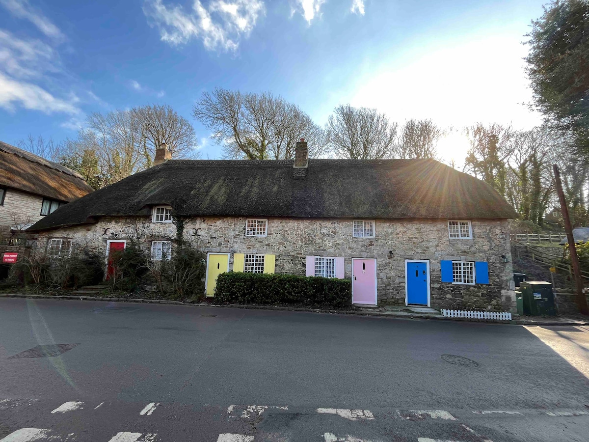 靠近拉尔沃斯海湾(Lulworth Cove)和达德尔门(Durdle Door)的茅草屋顶乡村小屋