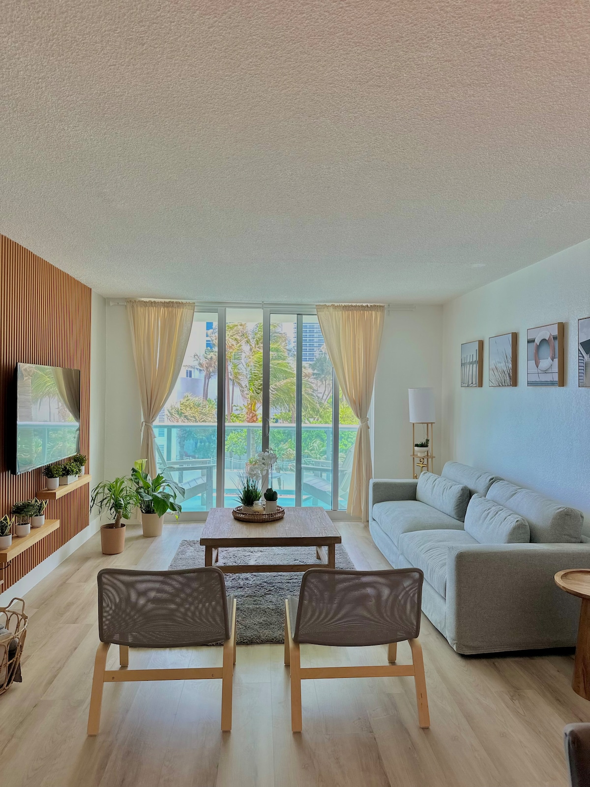 Come and enjoy this beautiful, modern, spacious apartment with beach 🏝️ and pool access. This apartment is a 2 bedroom/2 bathroom unit with a full kitchen, smart TVs 📺, confortable dining and living room areas. Bedrooms: Master bedroom with King bed 🛌 Guest bedroom with 2 Queens 🛌 Bathrooms: Master bathroom with tub 🛁 Guest bathroom with elevated shower 🚿 Parking: Free for 1 car 🚙 Additional fees Fob: $30 per fob( 1 fob for per 2 individuals)