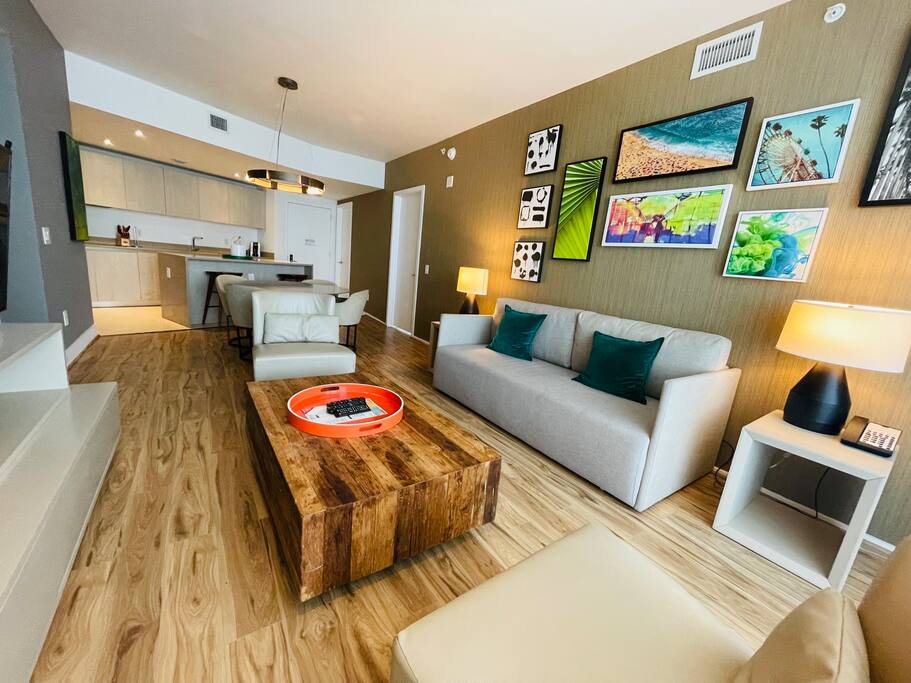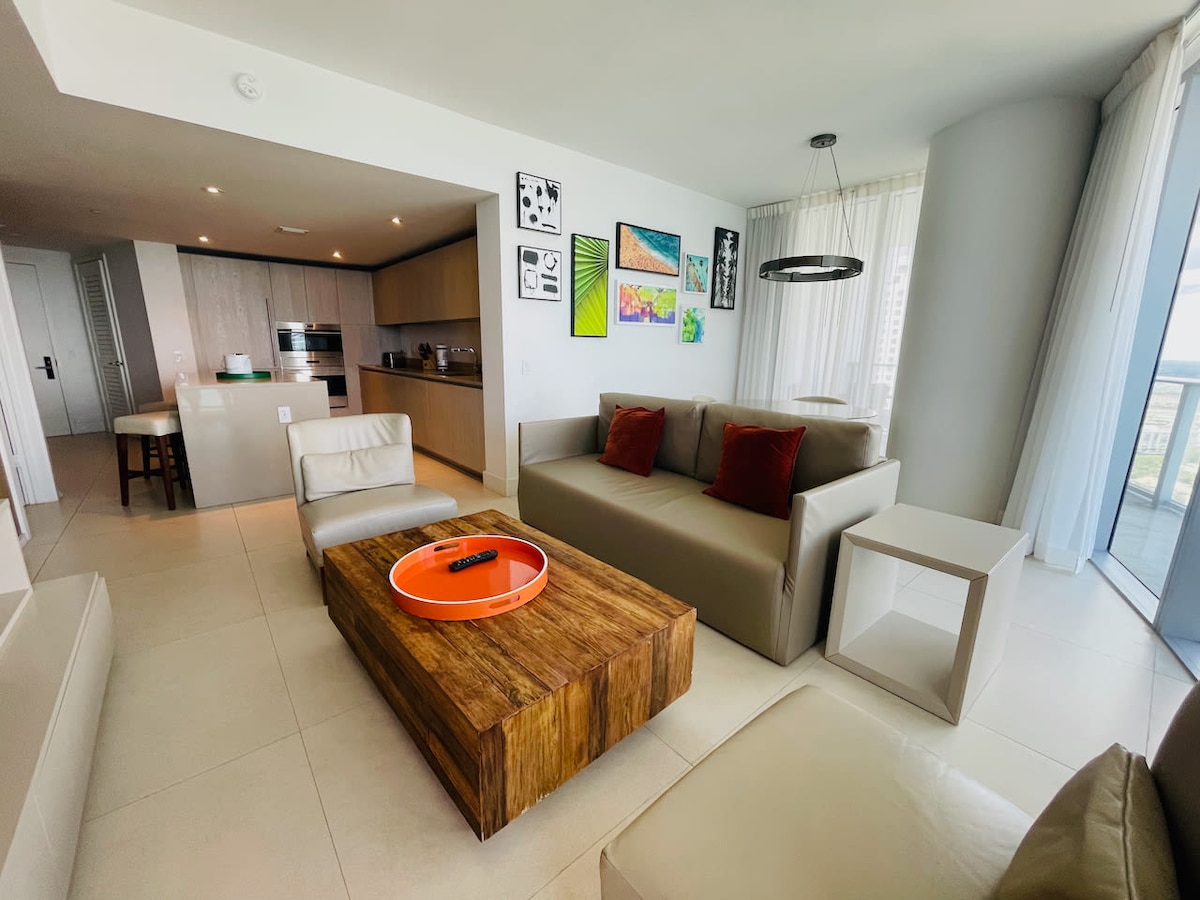 Modern Apartment on the 34th Floor, With Amazing Ocean and Intracoastal Views !! The Apartment has 1 Suite, 1 King Size Bed, and Sofa Bed, Fully Decorated. We have Fast Internet, Washer, and Dryer, Coffee Maker, Microwave, SubZero Refrigerator, Dishwasher, stove, etc. Rest in Comfort, Enjoy 2 Excellent Restaurants, 2 Infinity Pools, Fully Equipped Gym with a Beautiful View of the Sea At the Beach, we have Beach Chairs, Towels, and Umbrella. Perfect Place to Relax with Family or Friends.