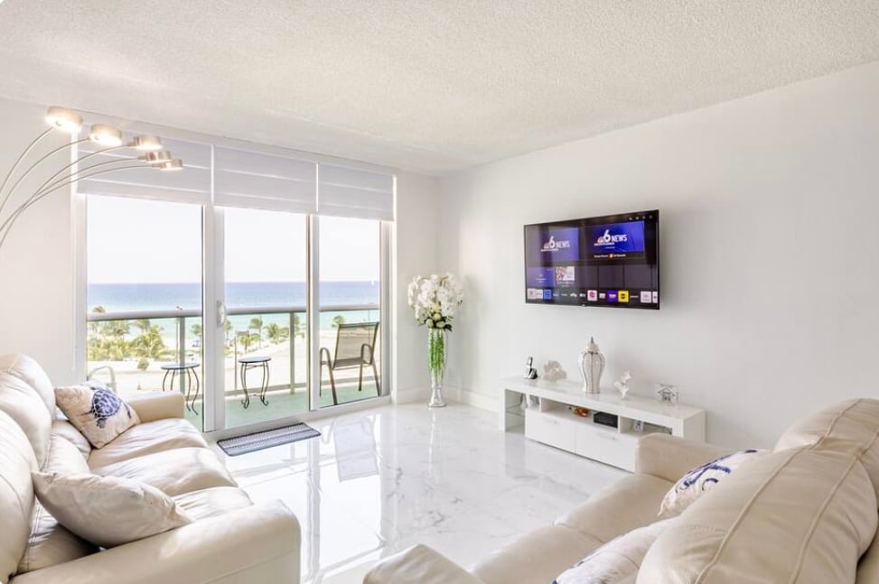 One bedroom, one bathroom, sleep 5. Maximum 4 Adults allowed. Fully renovated Apartment and building located on Hollywood beach. Exclusive beach access and is just minutes away from high-end shopping and great dining - Two Queen Size Bed + One Queen Size Sleeper - Nicely decorated & furnished - Heated pool - Gym - Business center with Internet - 24hr parking - 24hs security - Broadband internet wifi in the unit