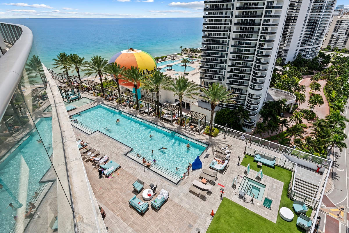 Enjoy an unforgettable retreat in this sophisticated 1 bed/1 bath haven in Hallandale Beach. Located in the prestigious Lyfe Beach Resort in Hollywood, it provides stunning views of the Atlantic Ocean. The sleek kitchen has premium appliances, including a Subzero refrigerator, oven, dishwasher, and Ninja Airfyer. Additional amenities include an in-unit washer and dryer, complimentary WiFi, and beach service with two lounge chairs and an umbrella for a perfect beach day.