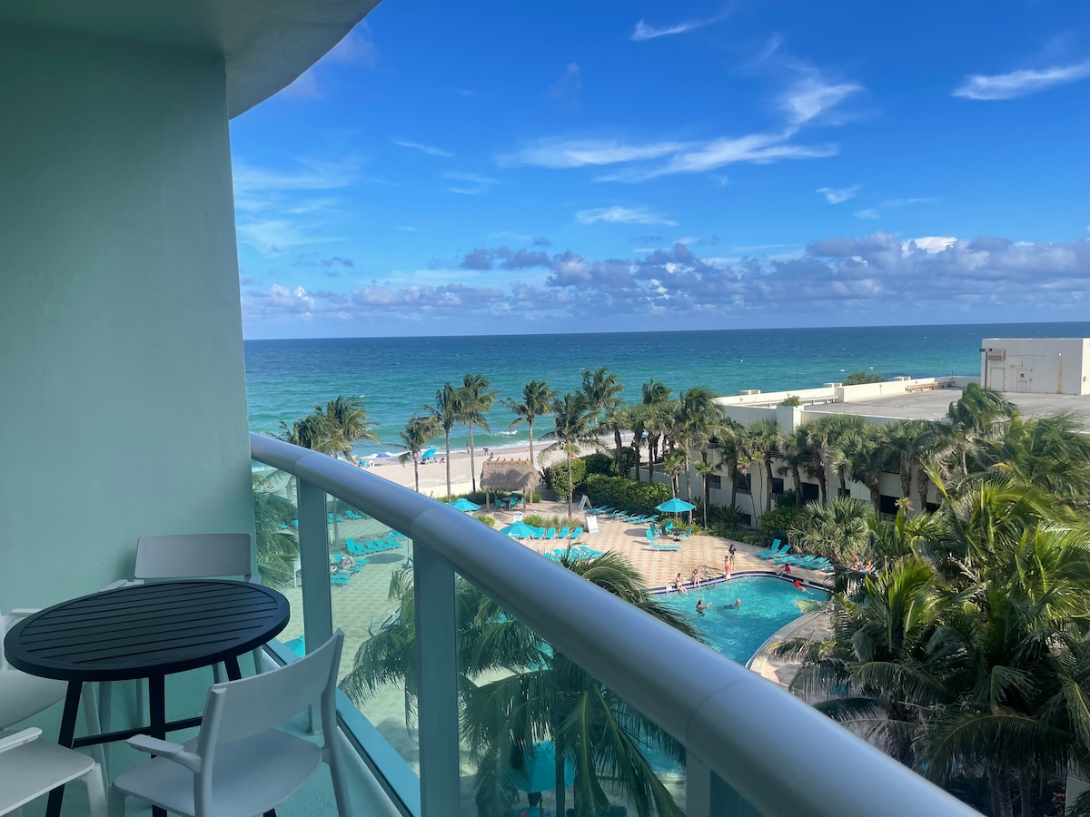 In the Tides in Hollywood. *NO RESORT FEE!* Located on the 6th floor with stunning ocean and pool views and facing south for maximum sunlight. Enjoy this high end modern apartment located between Miami and Fort Laudedale. The complex is right on the beach . The Tides has 2 heated pools , gym , game room , catering ($) and store ($), parking ($), sitting area under tiki , etc Located on South Ocean Dr. near Hallandale Blvd DBPR:CND1622639