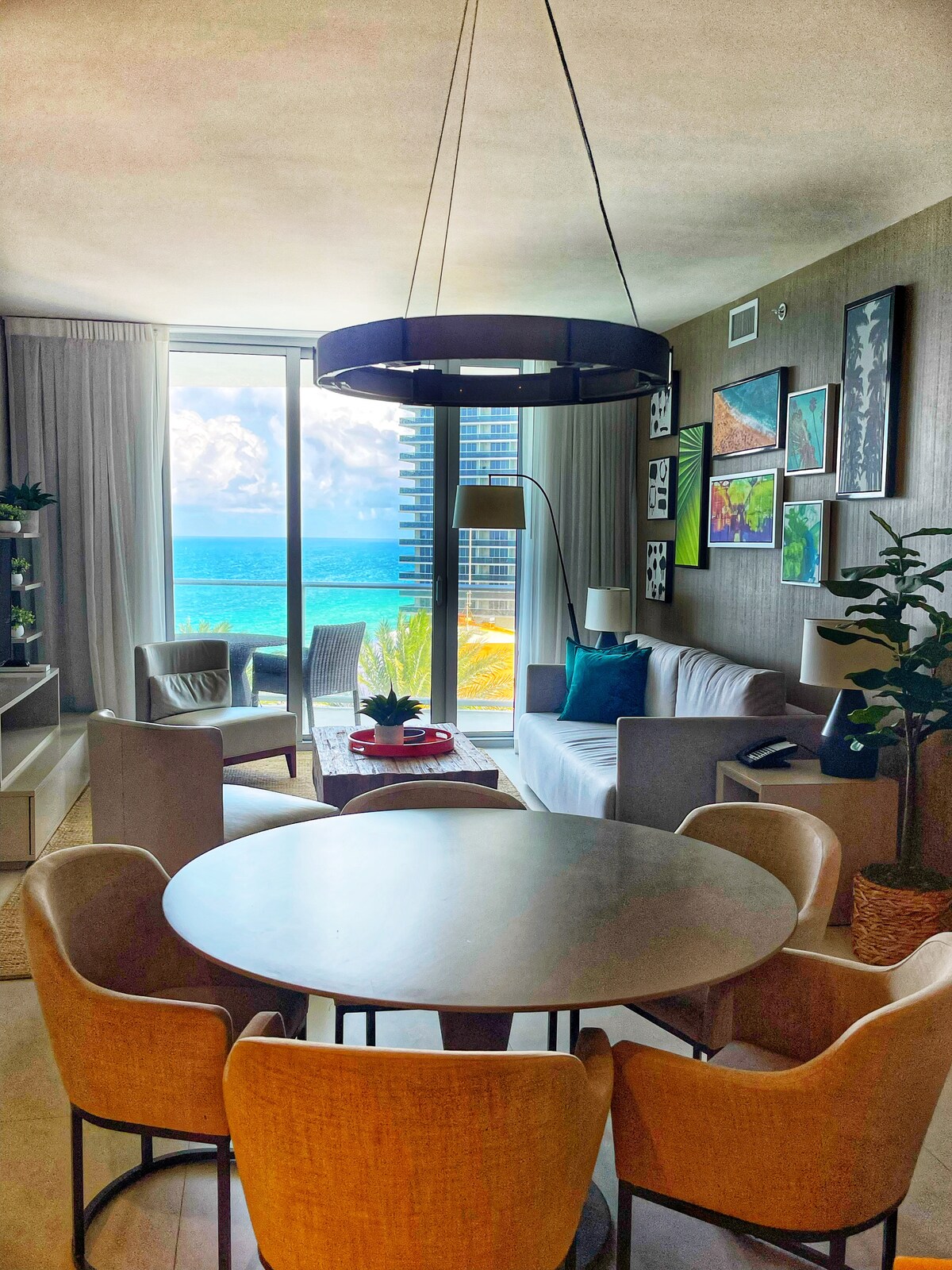 In the Tides in Hollywood. *NO RESORT FEE!* Located on the 6th floor with stunning ocean and pool views and facing south for maximum sunlight. Enjoy this high end modern apartment located between Miami and Fort Laudedale. The complex is right on the beach . The Tides has 2 heated pools , gym , game room , catering ($) and store ($), parking ($), sitting area under tiki , etc Located on South Ocean Dr. near Hallandale Blvd DBPR:CND1622639