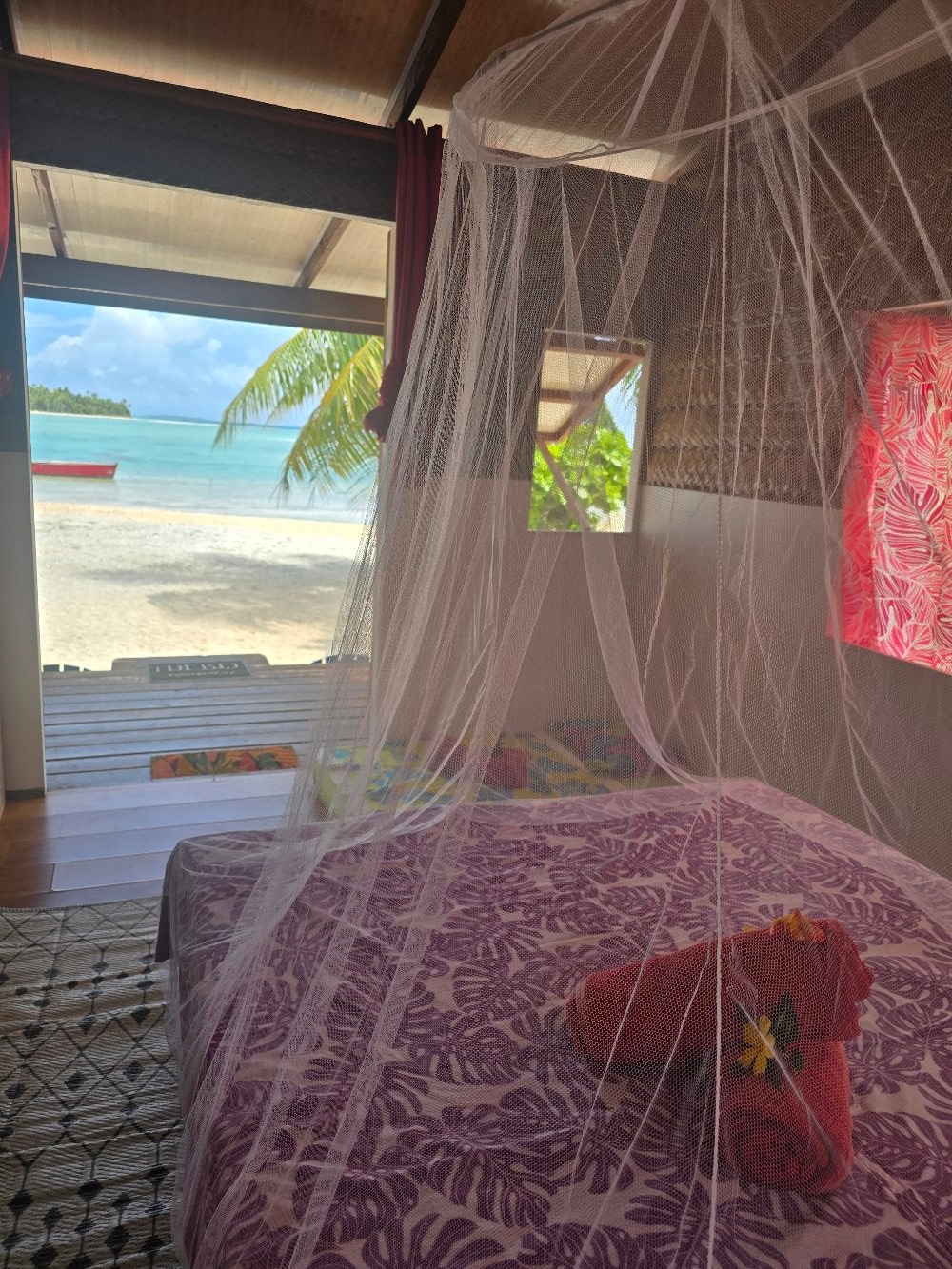 Profitez en famille de ce fabuleux logement qui offre de bons moments en perspective. A mi chemin entre l'océan et le lagon et à deux pas de l unique ferme perliere de l'île , d'une supérette et pizzeria. Notre bungalow climatisé peut accueillir 2 adultes et 2 enfants. Équipé d'un grand lit King size, un canapé lit et d'une kitchenette tout équipés . Internet et vélos seront mis à disposition gratuitement. Nous vous proposons un service de navette gratuit pour vos arrivées et départs .