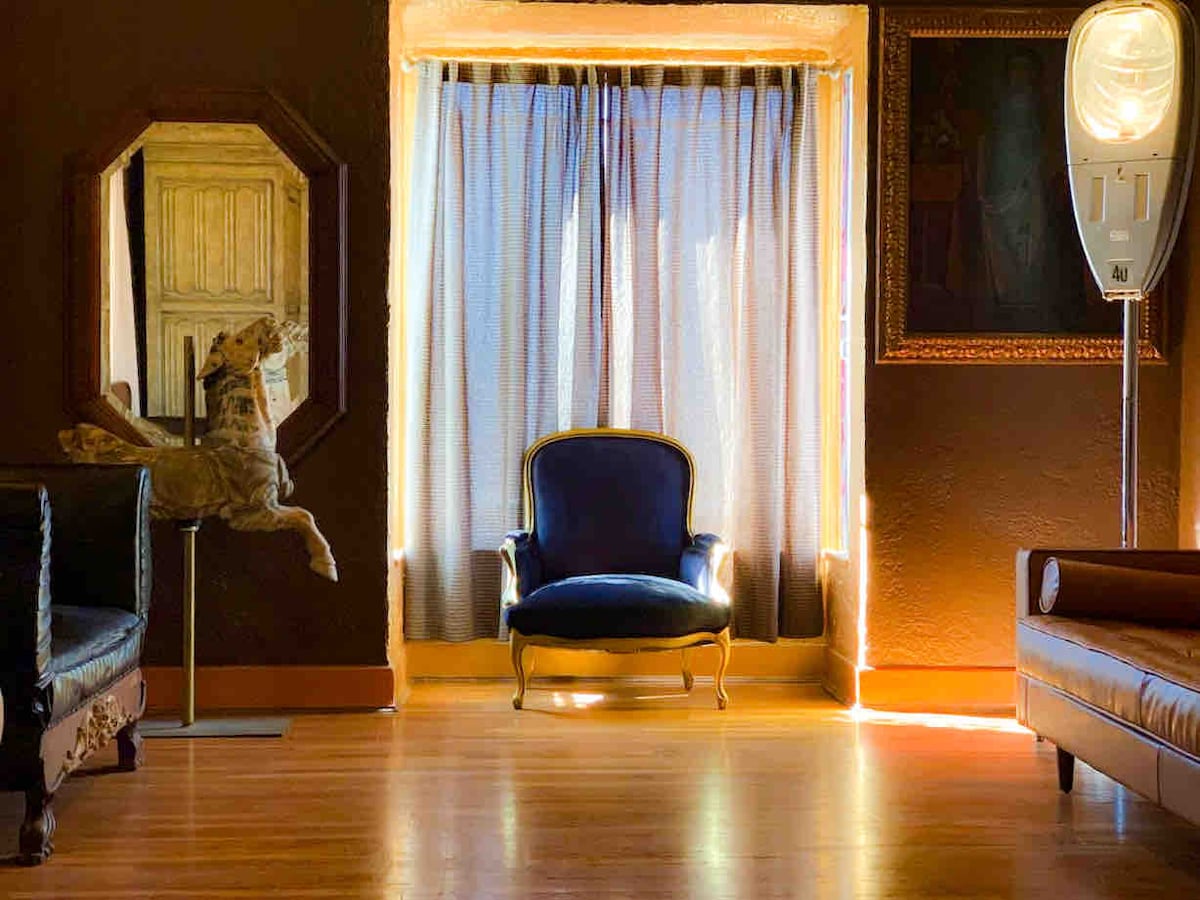 At Western Moon, enjoy a private retreat in one of Tucson's historic neighborhoods, Blenman Elm. Our renovated home sleeps 8, with interior and exterior spaces curated to be warm and welcoming while focusing on the indoor/outdoor living and beautiful weather we're known for. Play all day in the private pool, and enjoy evening BBQs in the backyard with outdoor dining, comfortable seating and string lights. Perfect for groups and families, we've designed this space with your enjoyment in mind.