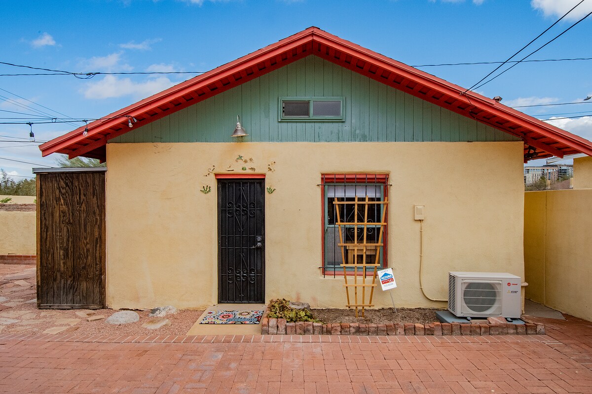✓ Retro appliances ✓ Well-equipped/stocked kitchen ✓ Wifi & smart TV ADDITIONAL FEE: To preserve the condition of our property, a refundable Safety Deposit ($700) or non-refundable Damage Waiver ($42.80) is REQUIRED. After booking, you'll receive a Boarding Pass link via Enso Connect, an AUTHORIZED AIRBNB PARTNER, to provide your name, phone, and email, and choose either the Safety Deposit or Damage Waiver. 3 min → U of A (walkable/bikeable) 3 min → Downtown Tucson 25 min → Sabino Canyon