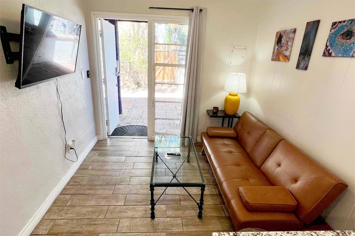 Start your mornings on the front porch with hummingbirds dancing through the garden, or unwind out back beneath the shade of a palo verde tree. Inside, enjoy the airy, sun-filled vibe of a modern casita with warm southwestern farmhouse style. Just a 10 min walk along the nearby bike path brings you to local favorites like Barrio Bread, and several restaurants. Located in a quiet, central Tucson neighborhood, only 5 mins from the University of Arizona and 5–10 mins from downtown.