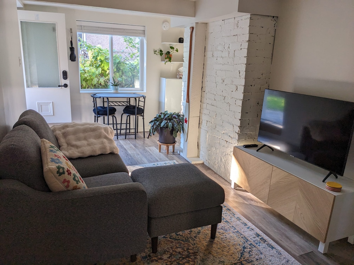 Stay in our spacious, private 1-bedroom garden suite for 2 in central Kitsilano. Walk 10 minutes to West 4th & South Granville for dining, cafés, and boutique shops, or 20 minutes to Kitsilano Beach. A bus stop right outside takes you straight to Downtown and BC Place Stadium for FIFA 2026 matches. The suite features a comfortable queen bed, modern kitchenette, and a relaxed, minimal living space, plus a shaded private patio with your own entrance for chilling in a peaceful garden setting.