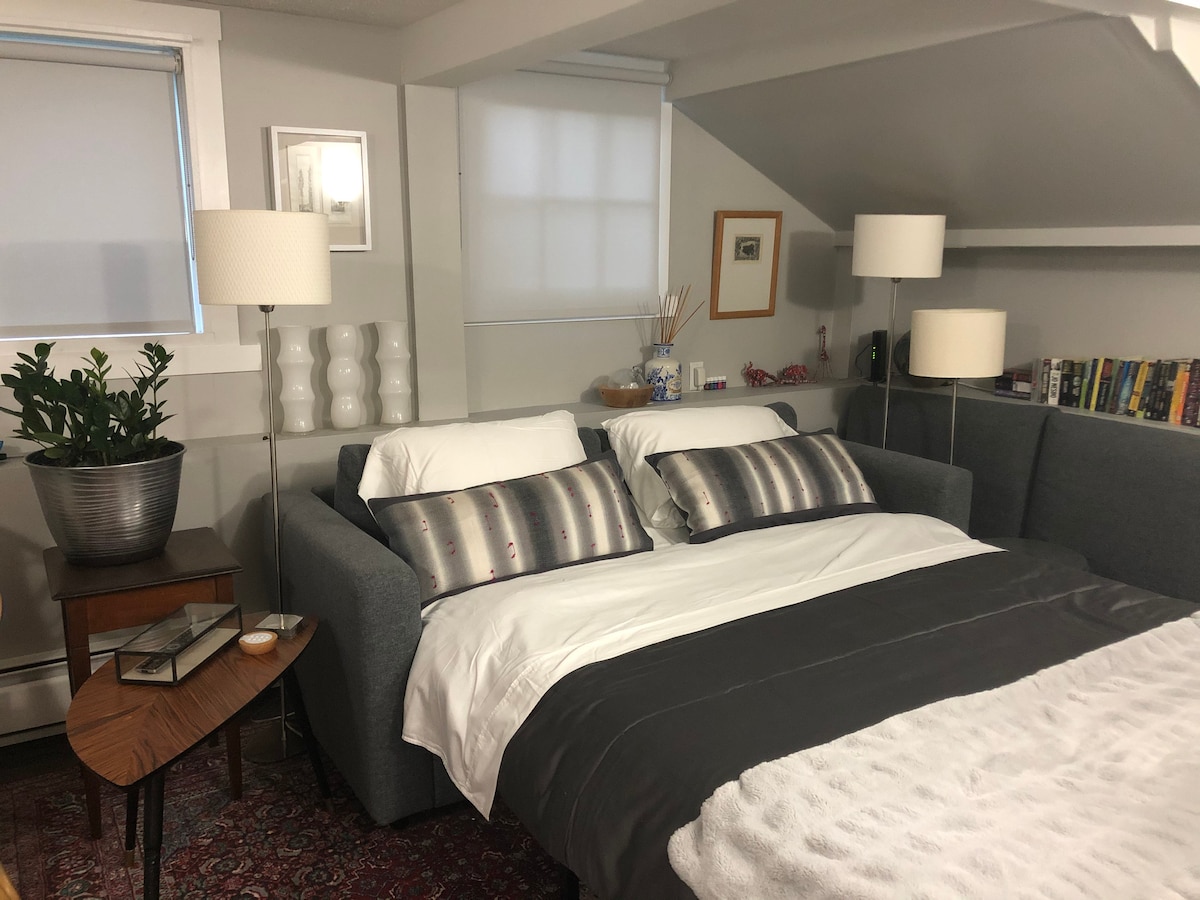 Bright Loft: King Bed, Parking, Remote Work Ready