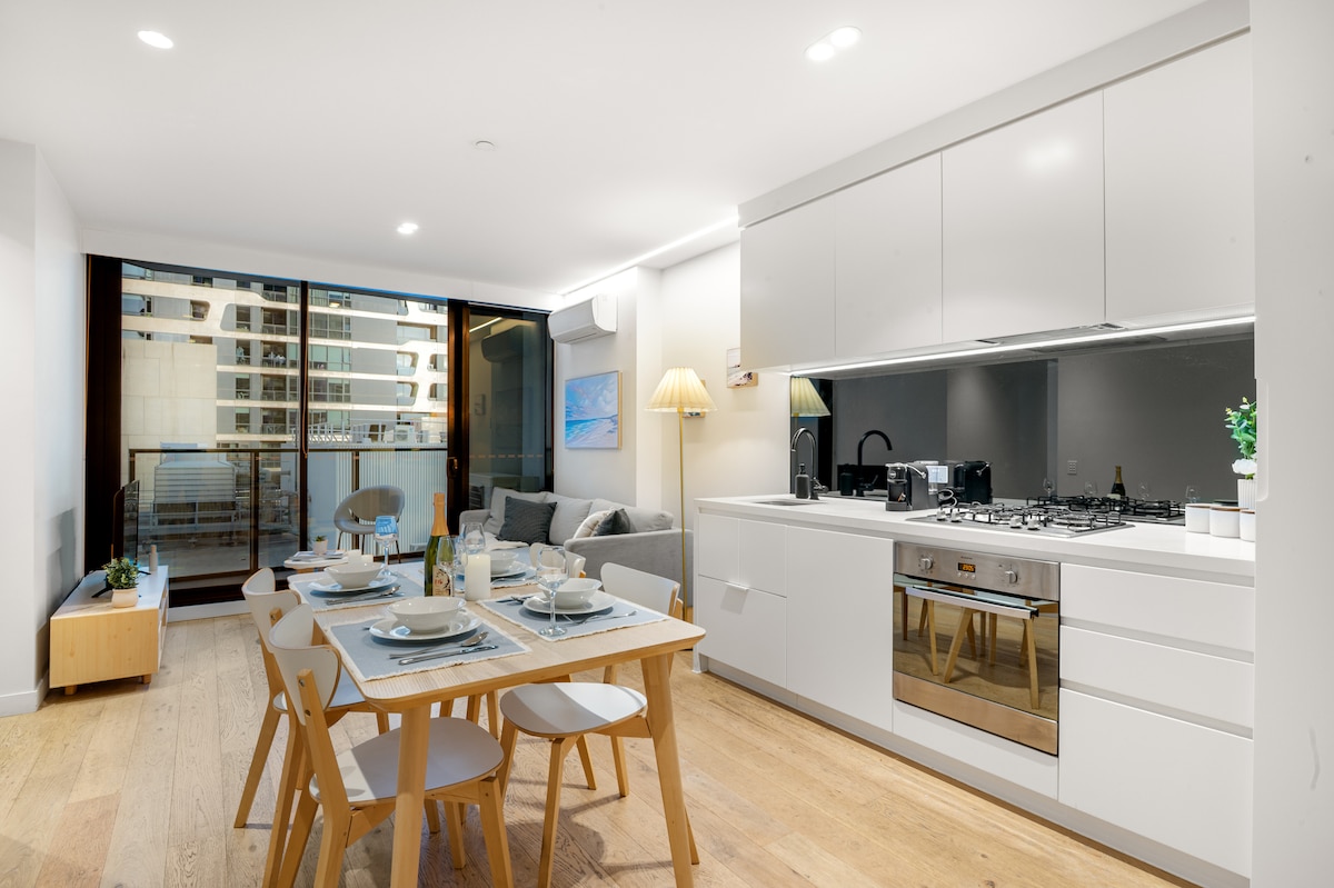 墨尔本中央商务区优雅的1卧室公寓|无线网络和停车位