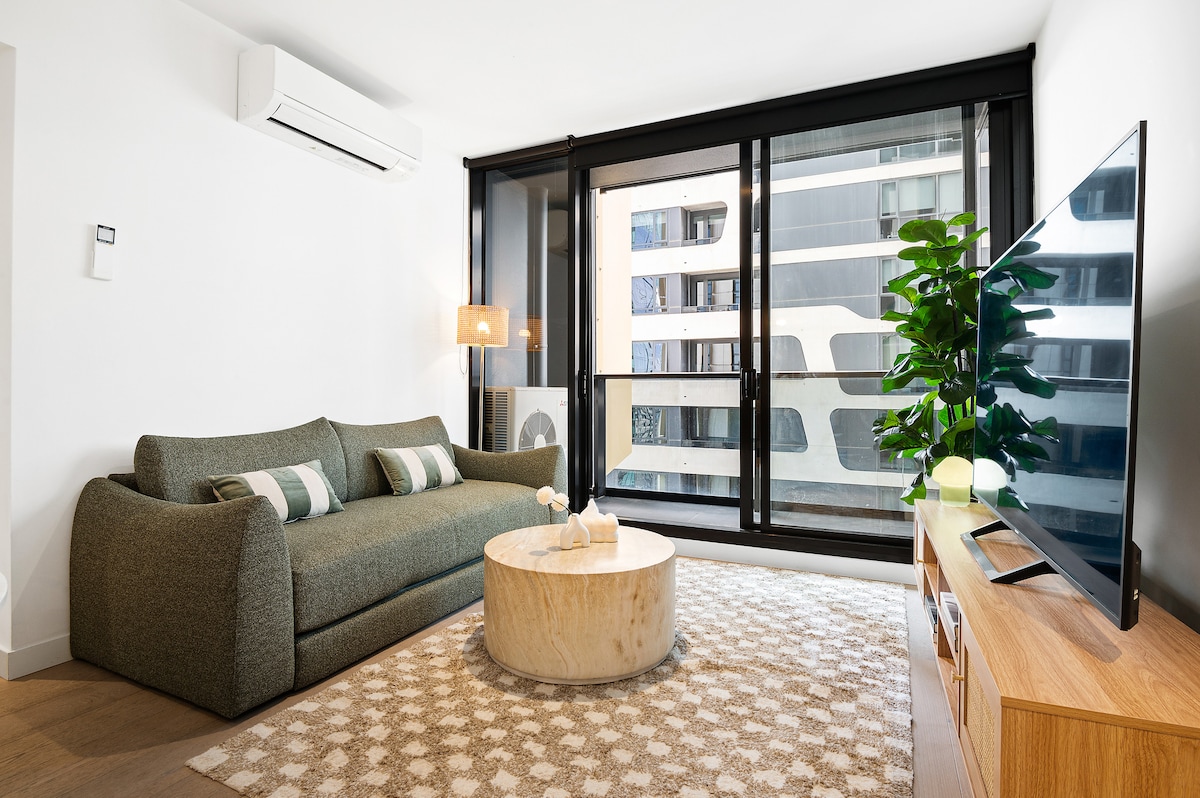 - Prime location minutes walk from MCG & CBD - FREE PARKING on-site - sun filled balcony patio perfect for summer - Nespresso machine - fully equipped kitchen - premium bedding & linen for a comfortable nights sleep - laundry with washer & dryer - close to trams & trains - quiet position in the building with no street noise - WiFi and Netflix Walk to the MCG or catch a tram to CBD shops, theatres, restaurants & cafés. For business or pleasure Casa is the ultimate place!