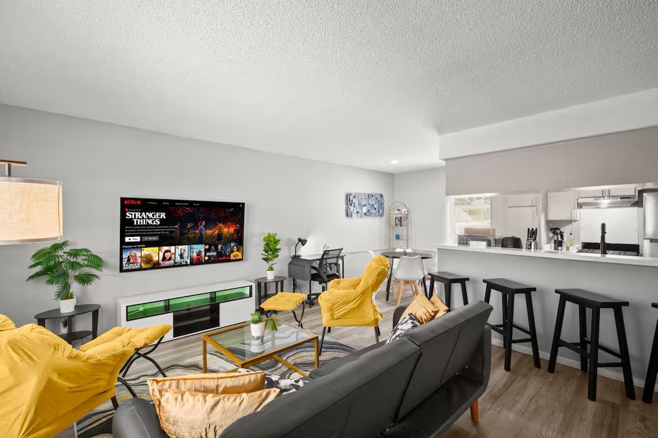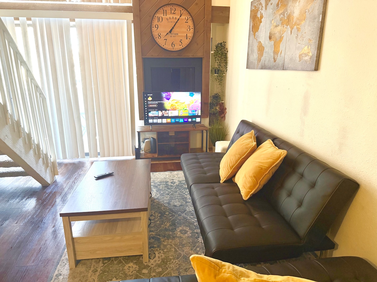 You’ve arrived at the Hampton House — a luxurious retreat in central Austin. 🏡✨ Tucked in a quiet neighborhood, this fully private top-floor apartment is an easy stroll to UT Austin — just ½ mile — and walkable to downtown (1.7 mi). Enjoy: ✅ An 85-inch living room TV ✅ Power-reclining sofa with built-in air massage, heating and cooling ✅ 70–75-inch smart TV for each bedroom ✅ Top-brand king mattresses ✅ Fully stocked kitchen ✅ Themed decor ✅ Hanging egg chair ✅ Responsive Superhost support