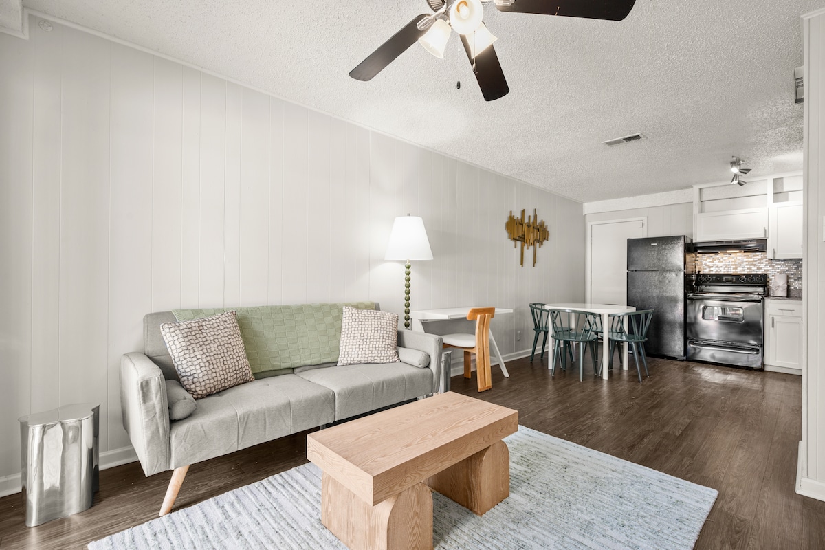 Discover your Austin getaway in this sleek, updated condo just minutes from UT, downtown, Zilker Park, and Barton Springs. Perfect for exploring the city — walk to restaurants, coffee shops, and nightlife. ✔ Sleeps 5 | Queen Bed + Sofa Bed + Air Mattress ✔ Fully Stocked Kitchen w/ Coffee Bar & Air Fryer ✔ Free Parking | Pet-Friendly | Fast Wi-Fi | Smart TVs ✔ Desk for Remote Work Ideal for business travelers, couples, students, and solo adventurers.