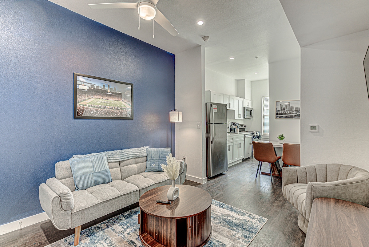 The whole group will enjoy easy access to everything from this centrally located place.Located in the heart of Austin's popular South Congress District, this 1,000+ square foot 1BR condo boasts downtown views from the living area, a smart TV, and stylish and Austin-themed art. Walk to famous music venues, popular restaurants, and a wide variety of cute boutiques and famous shops in the brand-new Music Lane District. Downtown is less than 1 mile away.