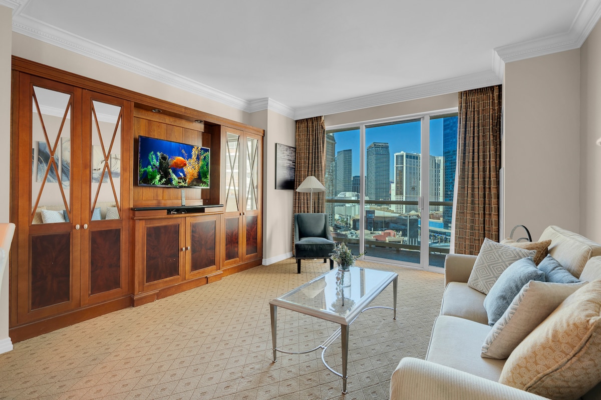 Experience unparalleled luxury at our distinguished 1-bedroom suite located within Palms Place, Las Vegas! Partake in the offerings of exclusive facilities such as a pristine pool, cutting-edge gym, and an array of premium hotel services. Retreat to your private oasis adorned with a sumptuous marble bathroom featuring a rejuvenating Jet-Tub. Savor panoramic views from your expansive balcony and unwind, knowing that we've meticulously crafted every aspect for a comfortable stay.