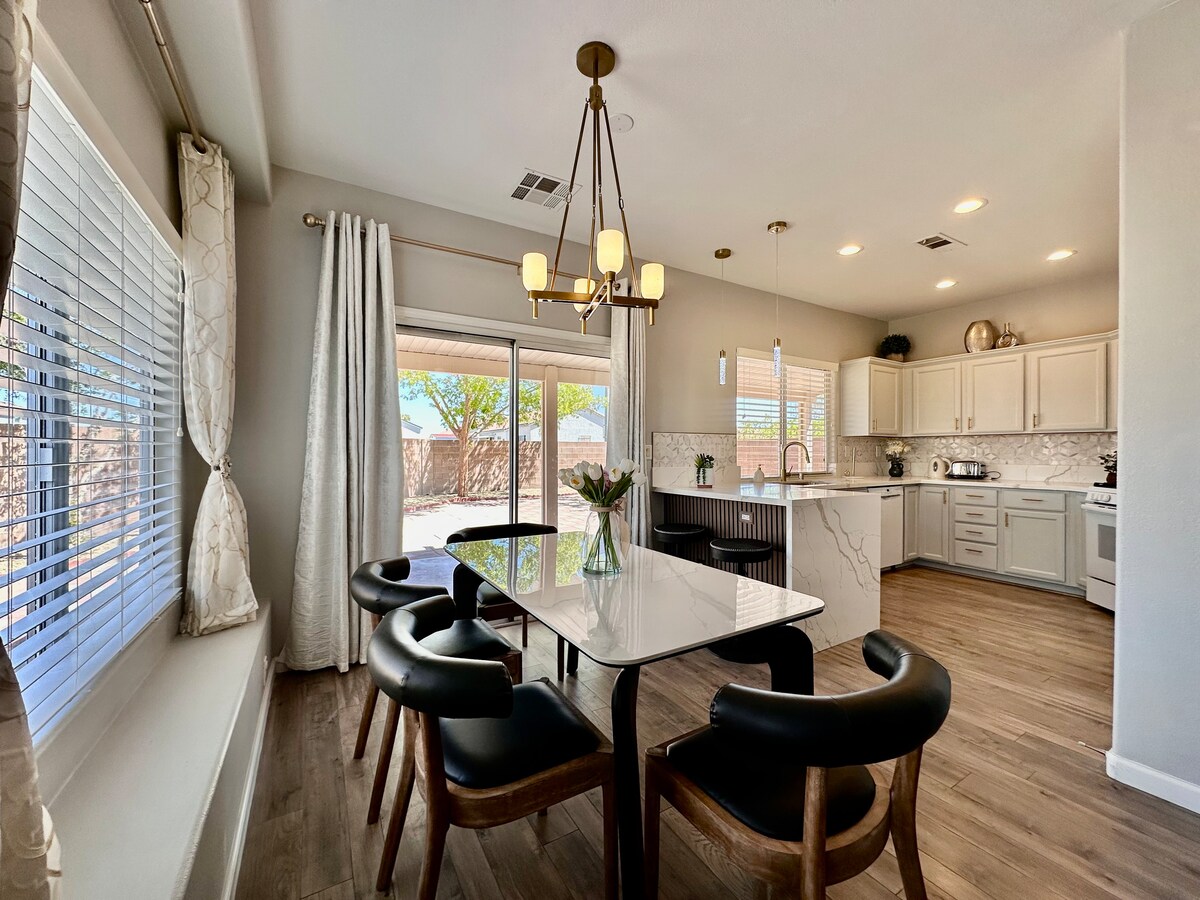 RARE on the market! This absolutely Stunning, fully remodeled licensed Artsy home with a POOL, BUSINESS CENTER, CHEF KITCHEN is in the heart of historic DOWNTOWN-just 5 min drive to Las Vegas Strip, 10 min to Convention Center and 3 min to Fremont Experience. Nestled in a peaceful neighborhood this exquisite retreat is ideal for guests seeking luxury, comfort, and fun all in one place. Thoughtfully designed and beautifully equipped, this home meets all your family, business, and leisure needs.