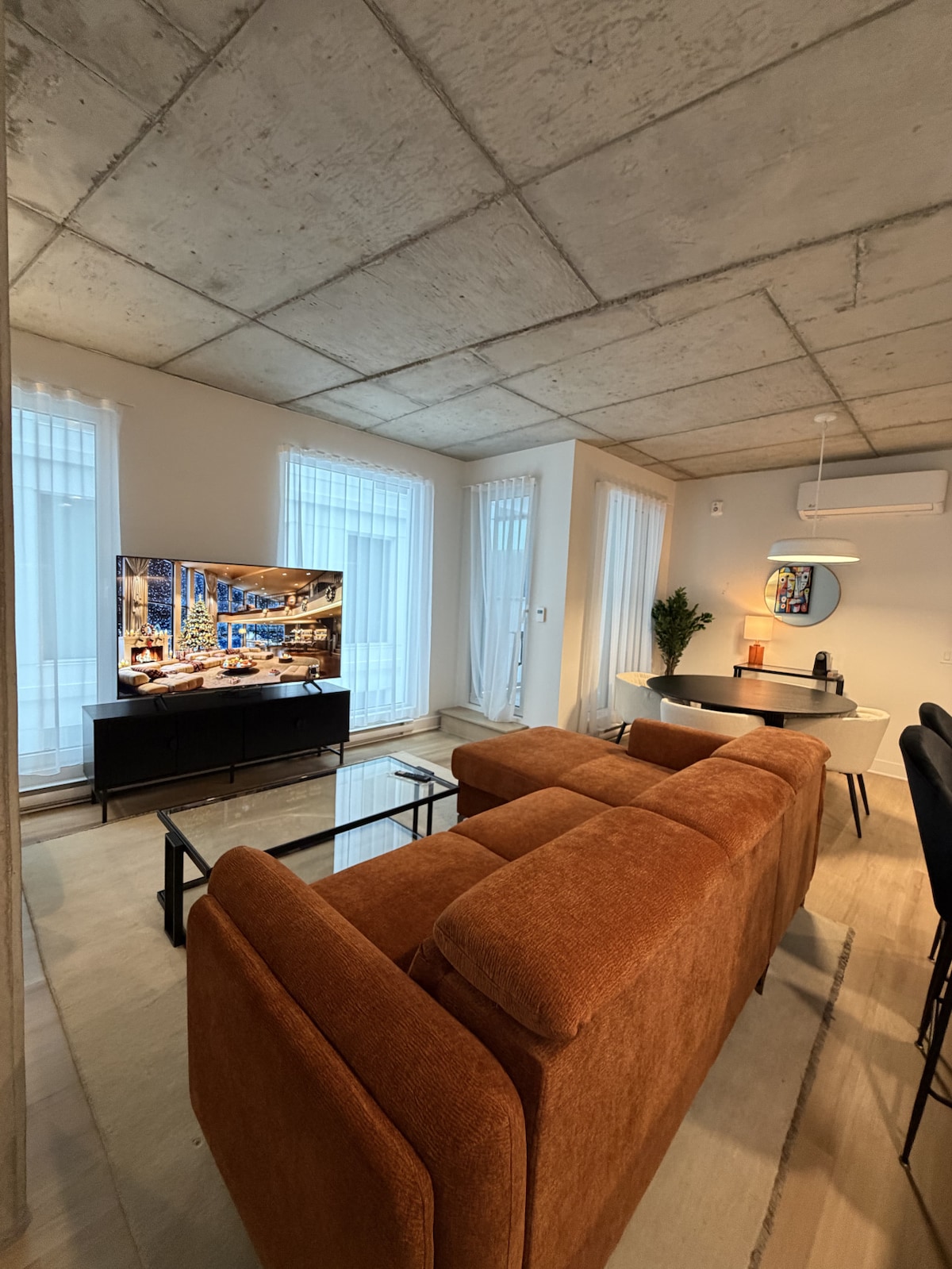 Charming 3-bedroom apartment in a historic building with steep stairs, located in downtown Montreal. Ideal for families and groups, with a king bed, queen bed, bunk bed, and sofa bed. Enjoy 2 full bathrooms, central air conditioning, a private balcony, and parking. Steps from Quartier des Spectacles, the Old Port, and vibrant Saint-Denis Street that offers many restaurants and bars. Close to Parc La Fontaine. Modern kitchen, fast Wi-Fi, and smart TV. Perfect blend of history and modern comfort