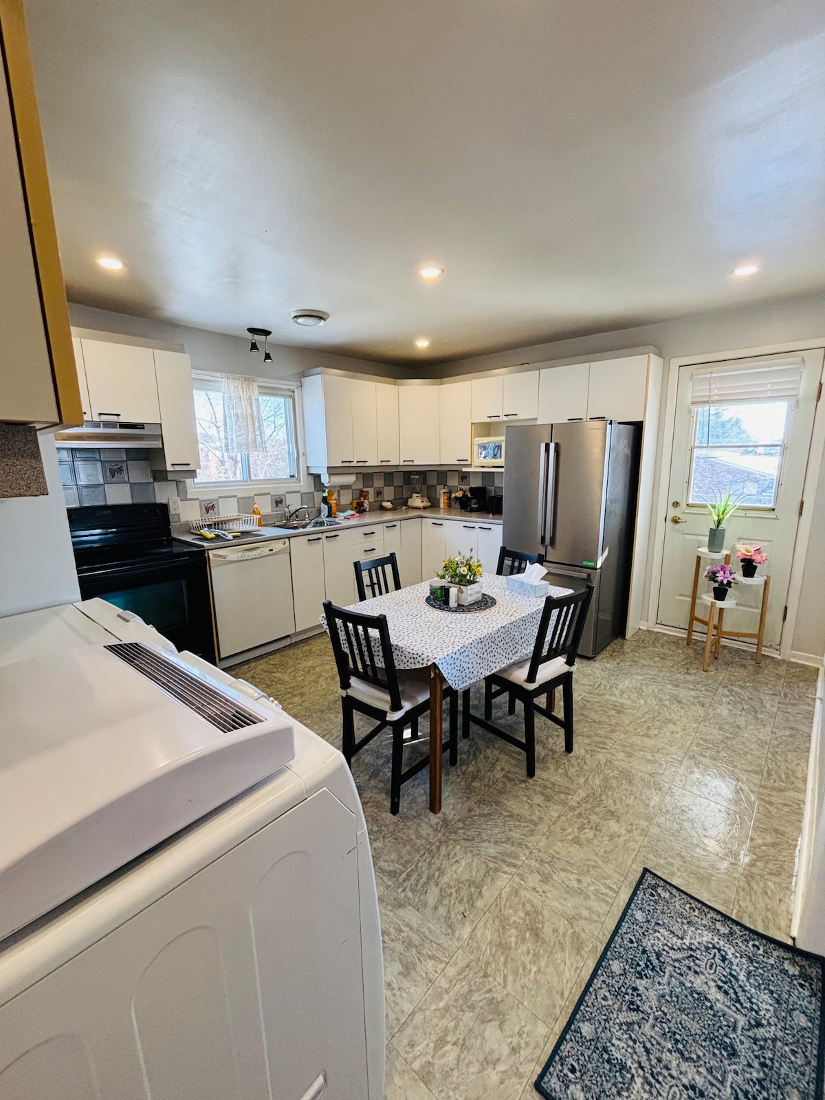 Fully Equipped 4 1/2 Basement + Solarium 1 Bedroom + Kitchen + Living Room + Bathroom. Private Hot Tub - Available 24/7 Though it's a basement, there are lots of sunlight coming in. High Speed WIFI + Smart TV For any drummers/musicians out there, there is an Electric Drum Set free to use! Private Entrance & Free Driveway Parking. We provide complimentary Bottled Water, Ground Coffee, Tea & Snacks. We do NOT allow Parties/Events/Gatherings.