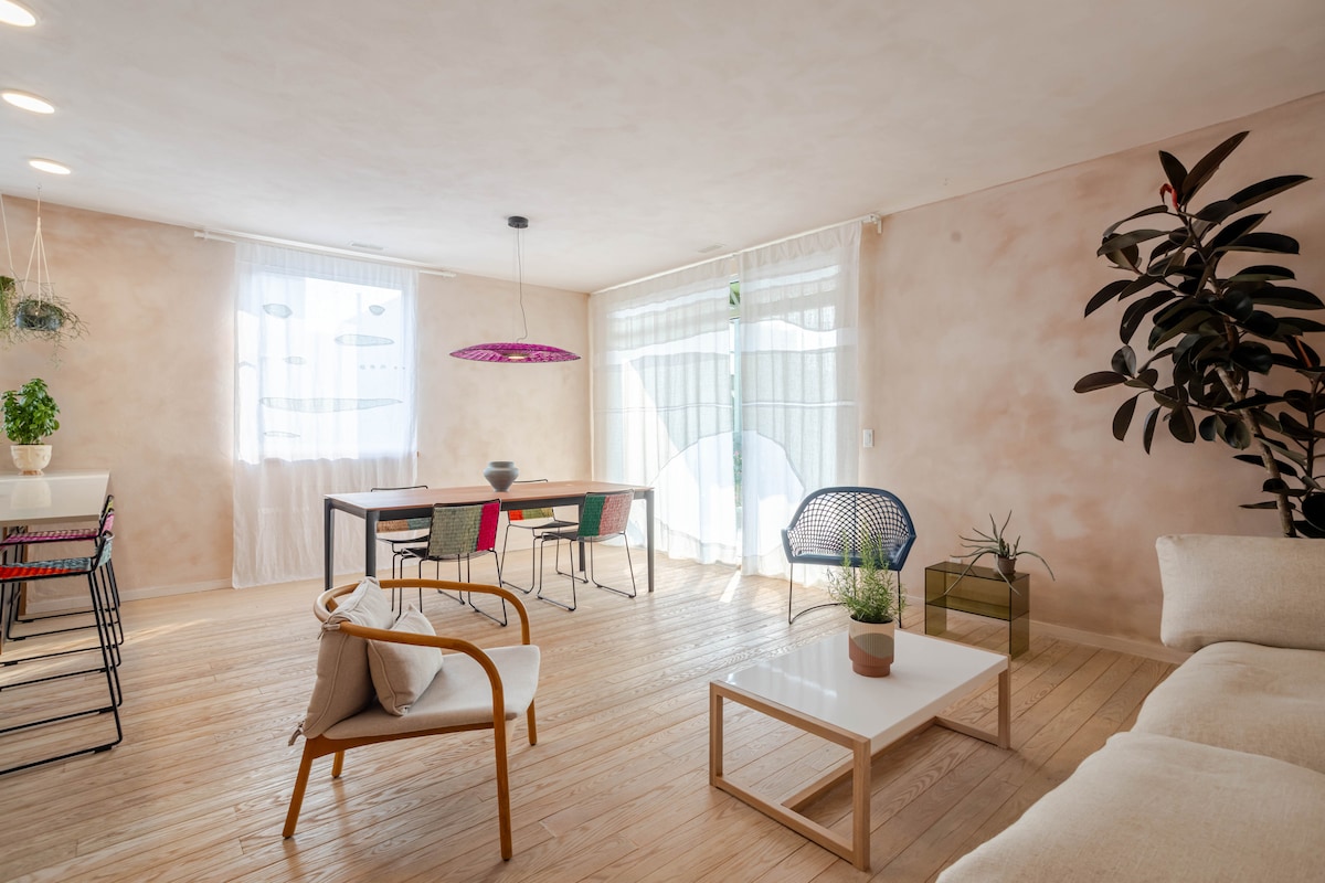 Independent suite with kitchenette, bathroom, and office nook. Located on the ground floor of our house in a quiet and safe residential area. Bright accommodation with a view of the backyard garden. Outdoor spaces and amenities (pool, patio, BBQ) shared with the homeowners. Free and secure street parking in front of the house. Montreal is 25 minutes by car and 40 minutes by public transit.