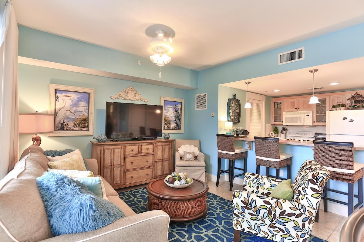 Spring into savings with 10% off 🏖️ Boasting vibrant décor in modern hues, our comfort-focused condo is a must-stay. Spend quality time together on the patio, prepare meals in the fully equipped kitchen, or enjoy community amenities such as the pool, hot tub, gym, and more! This 1-bed, 1-bath condo is located in the heart of The Village of Baytowne Wharf and offers endless opportunities right outside, including boutique shops, eateries, and outdoor entertainment with fireworks. Book today!