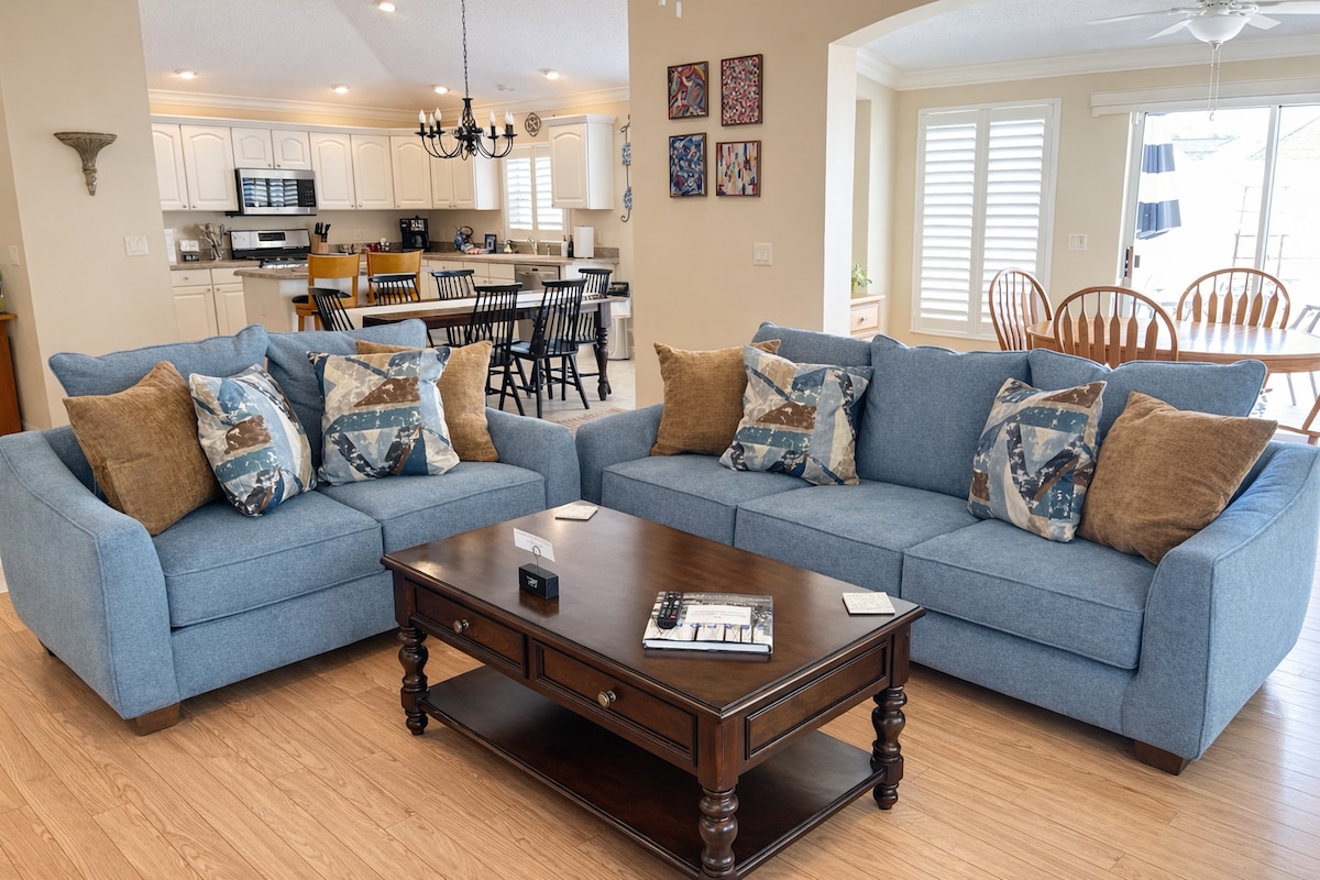 Welcome to your Villages retreat! Step into comfort and style in this beautifully decorated, designer home fully furnished with everything you need for a relaxing stay. From cozy bedding to modern furniture. Located in the sought-after Village of Osceola Hills, end of Moyer Blvd just south of Route 44, this spacious 3-bedroom, 3-bathroom home (2021 sq. ft.) features a 2-car garage and comes with a golf cart. You're just minutes away from Brownwood (3 miles) and Sawgrass Grove (2 miles).