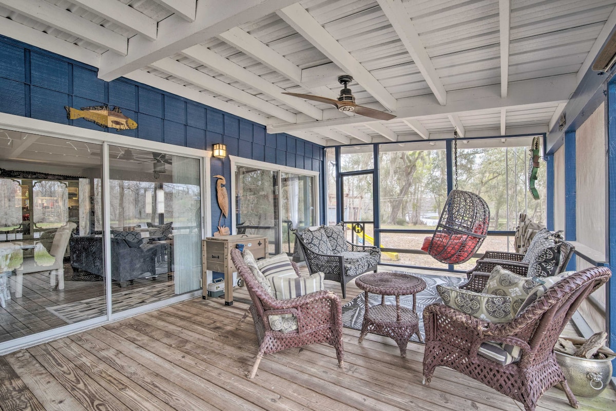 Come relax by the river in this 3-bedroom, 2-bathroom vacation rental in Lady Lake, Florida. Recently built by our family in 2022, the home has a screened in back porch, a fire pit, WIFI, and is complete with a large private dock right on the Ocklawaha River. All that and it's located only 10 minutes from The Villages where you can shop and have fun. Centrally located 1-1/2 hours from Disney, Daytona beach, and Tampa. Lockbox key access is available for check-ins at any time of day.