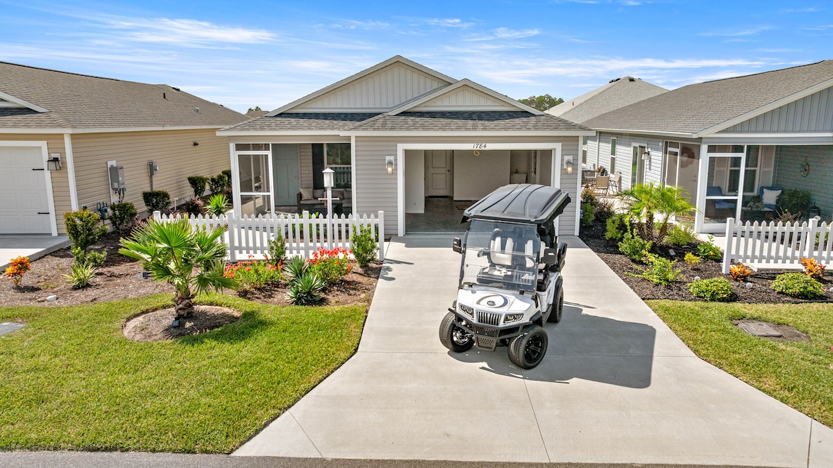 Enjoy a stylish experience at this centrally located 3-bedroom home. 5-7 minutes golf cart ride from Sumter Landing, 15 minutes from Spanish Springs Square, 20 minutes from Brownsville Square. 200 Community pools some for adults only and some for families. 13 Recreation Centers with Pickle Ball, Shuffleboard, Billiards, Study groups, etc. 3 Old Fashion Town Squares with nightly Live entertainment. 44 Golf Courses
