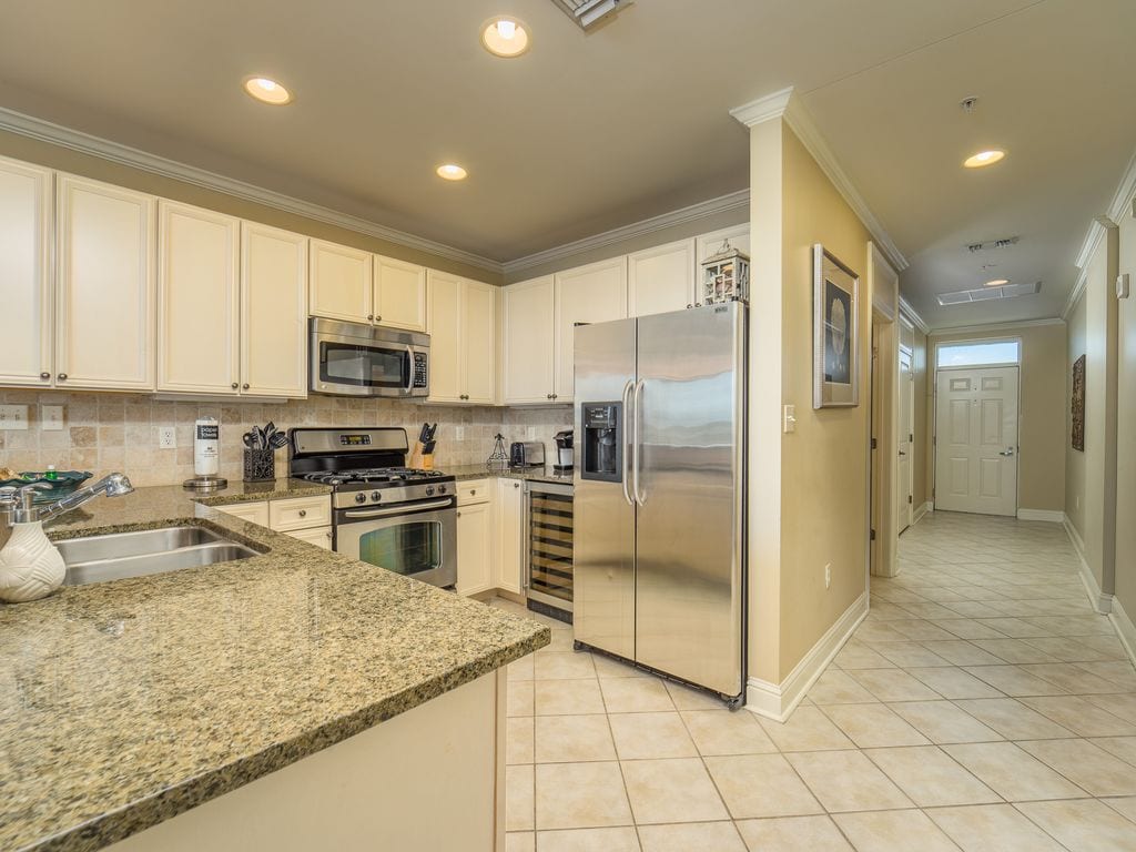 Updated luxury corner 1 bed/1 bath waterfront! Tile floors thru out, private bedroom w/king bed, bunk beds (twin size small )in the hallway, queen sleeper sofa. Full stocked kitchen w/brand new appliances. Covered waterfront corner balcony w/grill! 3.50 miles from beach! On-site dining, night life, Movie Theater, marina w/charter boats/cruises, Arcade, Ferris wheel, shopping, the Wharf Ampitheater, the Oasis resort pool w/wave pool,lazy river,slides,hot tub plus seasonal bar/restaurant at pool!