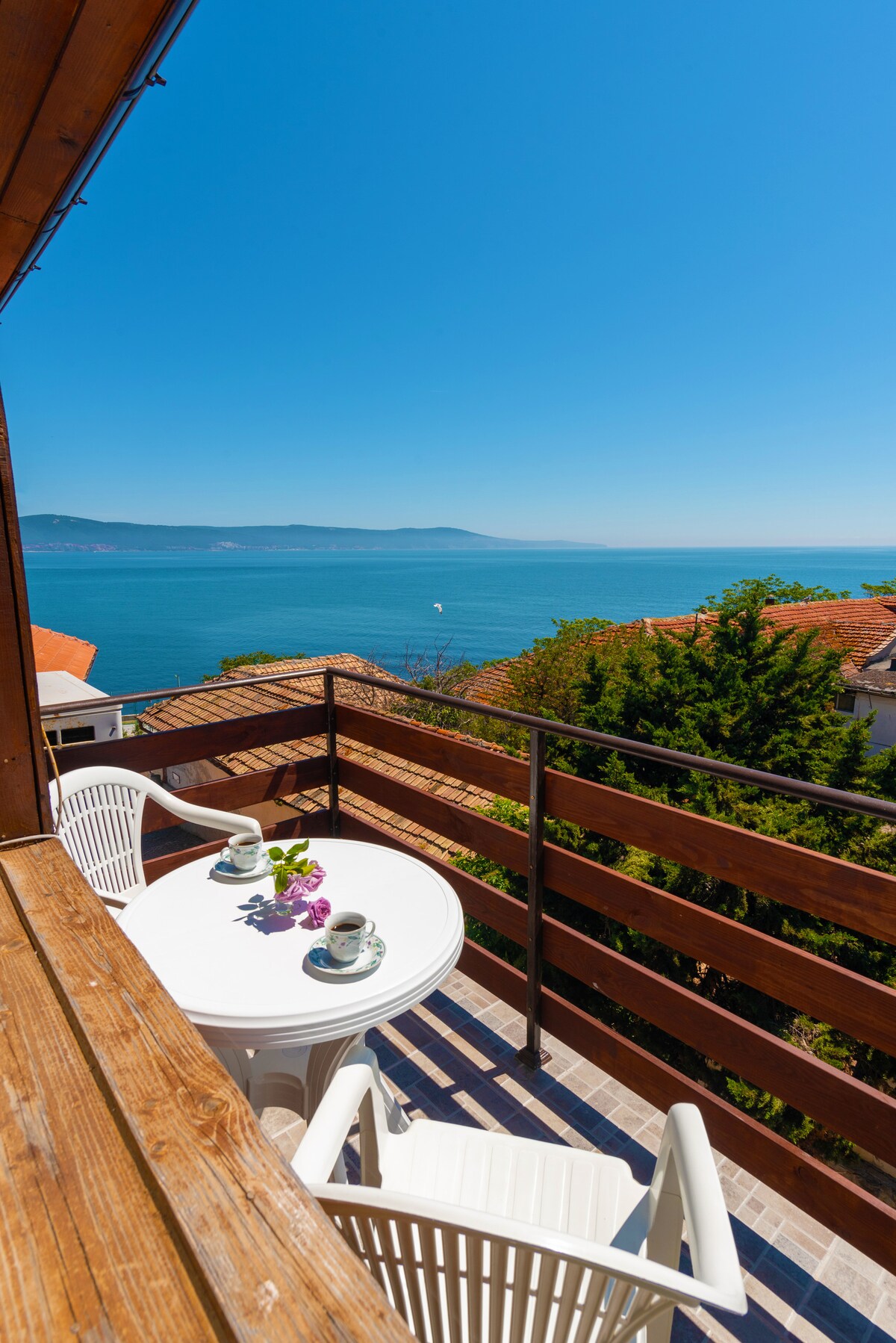 Villa Alenor is a stylish sea view villa located in the UNESCO Old Town of Nessebar, Bulgaria, offering direct beach access and a peaceful hillside setting above the promenade. A private staircase leads directly to the beach in just a 1-minute walk. With its modern design, relaxed atmosphere, and elevated position above the Black Sea, the villa is perfect for guests seeking comfort, views, and easy access to the sea. Only a few minutes' walk from cafés, restaurants and cultural sights.