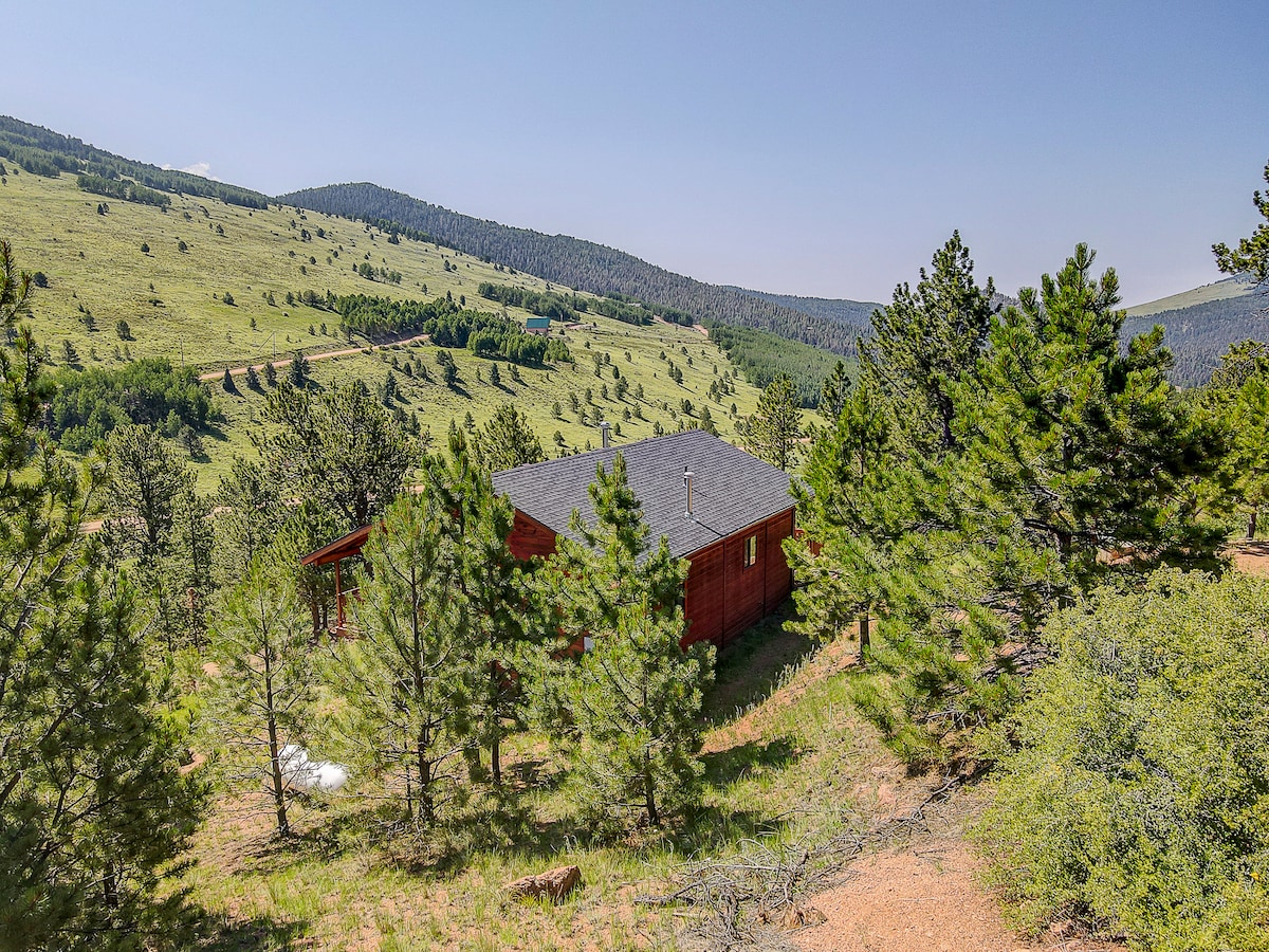 Experience a true Colorado getaway with this custom built Scandinavian inspired A-frame, nestled on the Palmer Divide, located only 15 min to Colorado Springs & 30 min to S Denver. You will feel secluded within the pines with views to die for. You might see wildlife walking by while enjoying a cup of coffee or glass of wine in the hot tub or cozied up in a blanket. First bottle of wine on us! Hiking trails are minutes drive from the cabin. Make sure to relax & make lots of memories. 😊