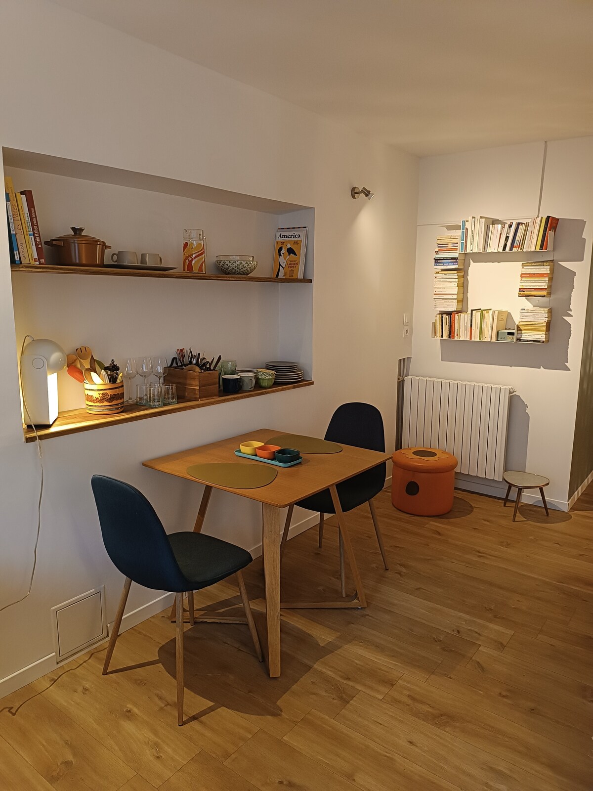 Je vous accueille au rdc de ma maison située au coeur du quartier historique d'Aubusson. C'est un logement chaleureux de 30m2 avec cuisine et salon. La cuisine équipée donne sur une petite cour privative. Le salon peut accueillir 3 personnes, avec un lit double en 140 et un lit simple, le wifi et la télévision. La salle de bain du rdc est privative au logement mais se situe en dehors de la pièce à vivre, seuls les w-c à l'entée de la maison sont en commun.