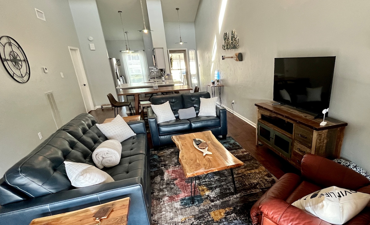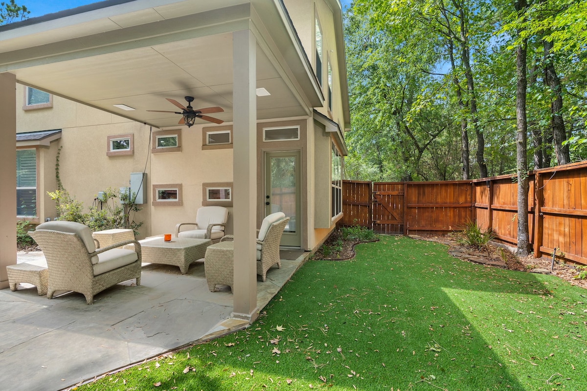 🍃Casa Granada is the perfect getaway home for families and groups- modern and cozy! Our floor to ceiling sliding glass doors, reveal our large, private backyard. Making this home, truly one of a kind. Only minutes away from The Woodlands and shops on Market street. Enjoy a night in with our Philips hue lights to set the perfect mood. You can also work remotely or hit the home gym! WIFI/TV/PARKING/CENTRAL AC/WASHER/DRYER/PATIO/GYM **For a grill: must be requested 24 hours before check in
