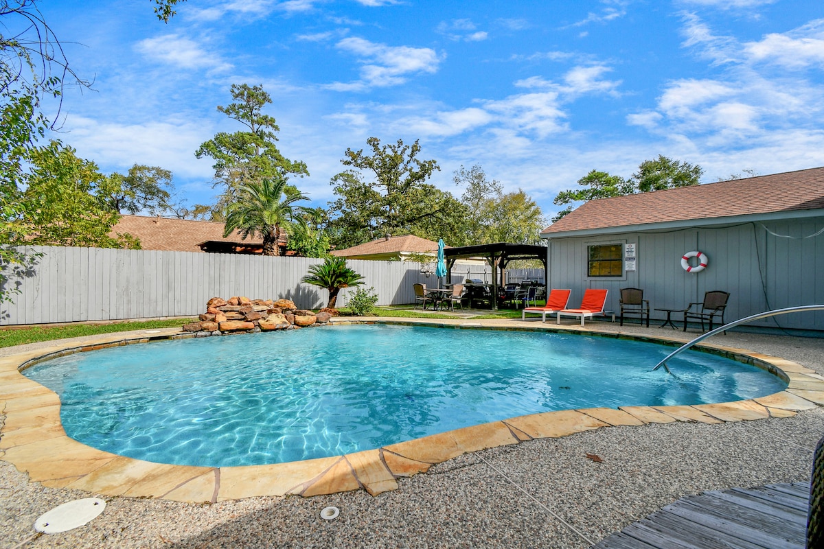 Stay 5 Min from The Woodlands in this one-of-a-kind retreat next to the Jones State Forest. 1/2 mile to walking, biking, or horseback riding on forest trails. At night you’ll gaze at twinkling constellations poolside or relax in our massage chair or jetted garden tub. Attend an outdoor concert at the nearby Cynthia Woods Mitchell Pavilion, one of the top amphitheaters in America. We are 5 min from The Woodlands Medical Center, and 10 min from The Woodlands Mall where you can shop till you drop.