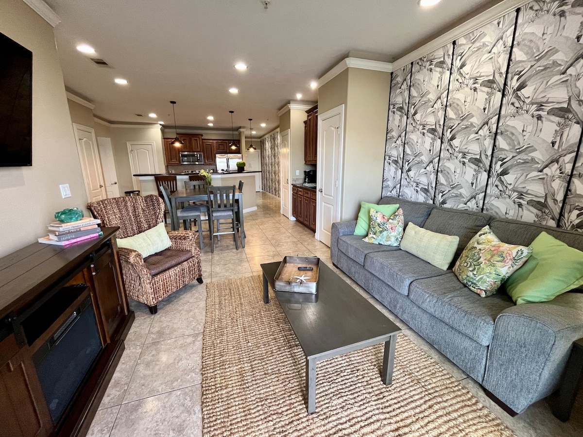 Welcome to Serenity Stays at Sandpebble! This spacious 3 bedroom, 2 bathroom patio home is perfect for the whole family, kids too! The open concept living allows for fun between friends while the outdoor scene welcomes the barbeque lovers. Our fully equipped kitchen opens to one of three patios. Each patio offers its own unique area for activity including a firepit, gas grill, outdoor dining and plenty of lounge area. Get creative and host your next family event under the string lights!
