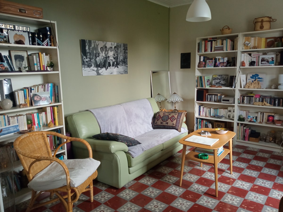 Nous mettons à votre disposition une charmante petite chambre d’amis située sous les combles. Les WC et la salle de bain se trouvent à l'étage en dessous. Pas de climatisation dans la chambre mais à l'étage. Idéal pour se reposer au calme, flâner au marché de l’Isle sur la Sorgue, aller au golf voisin ou bien faire des balades cyclistes : un abri pour les vélos Notre maison est un mazet de 100 ans aménagé en 2019. Il a été agrandi par un ajout moderne.