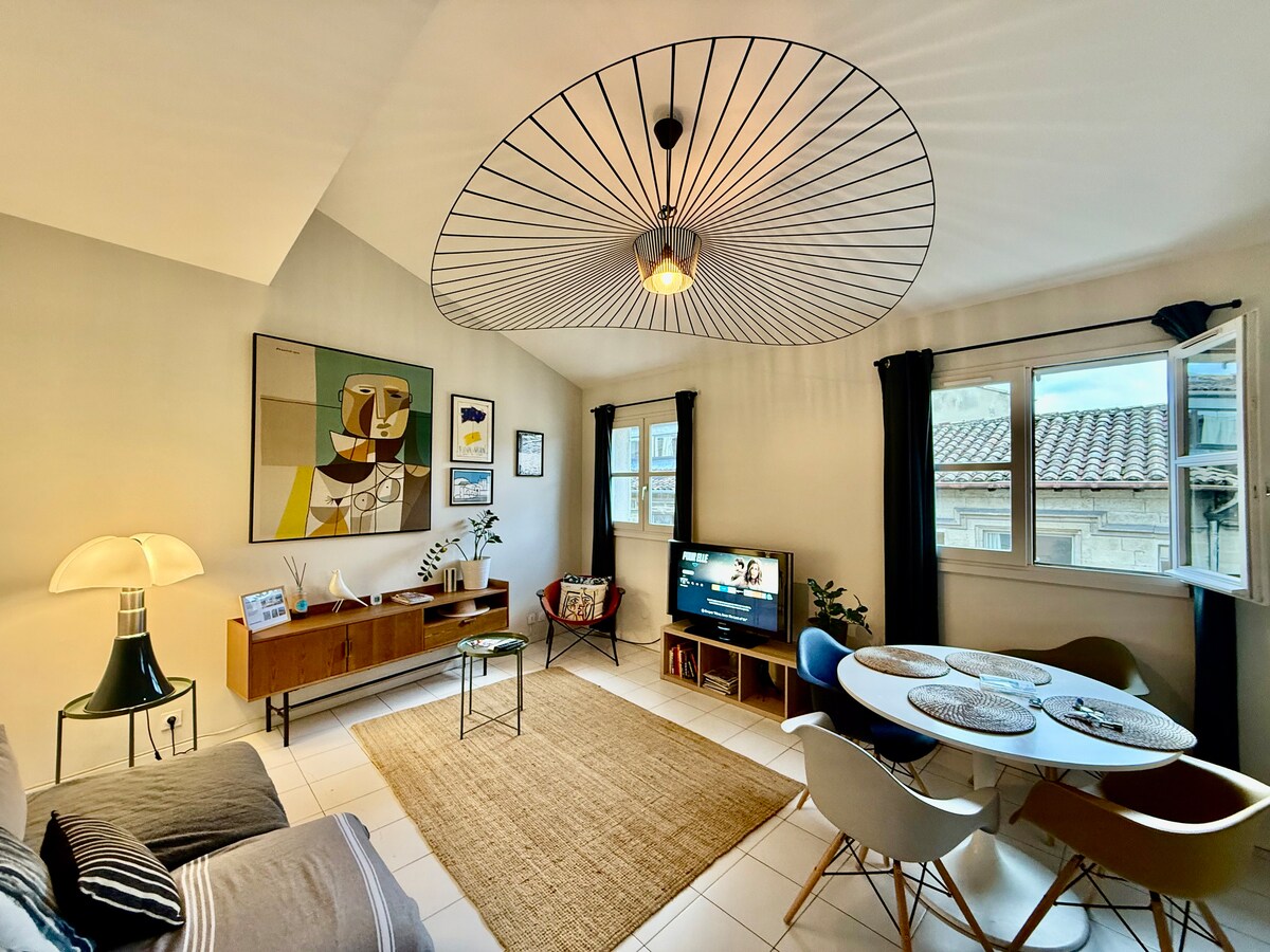 More than 960 AMAZING REVIEWS! Ideally located in the heart of the city, beautiful apartment well decorated, 1 to 4 people. Quiet, cozy, fully equipped, air conditioner and wifi, next to shops, in the best neighborhood of Avignon. Autonomous check-in 24 hours a day Private free Parking space 1min walk 5 minutes walk: Palace of the Popes, Avignon's bridge, center train station.