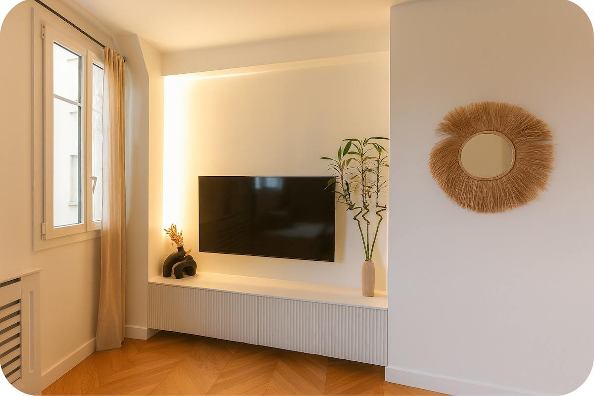 L’appartement se situe près du Moulin Rouge, dans le quartier Montmartre au cœur d’une Cité atypique et au calme ;vue sur jardin C’est un espace de 52m2 qui ne donne pas sur la rue ,rdch ,situé loin des bruits de la rue ,grand standing comportant une belle chambre, un coin détente ,un espace déjeuner /diner, de travail , cuisine ouverte ou fermée. Il est équipé des nouvelles technologies,wifi excellent ,un téléviseur grand format (85p), du son hifi et éclairage réglable selon vos goûts
